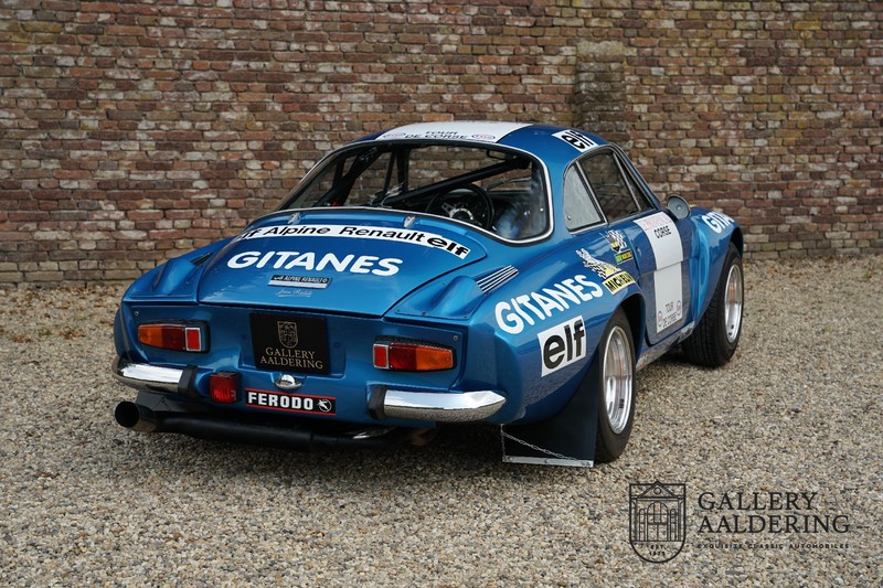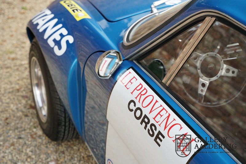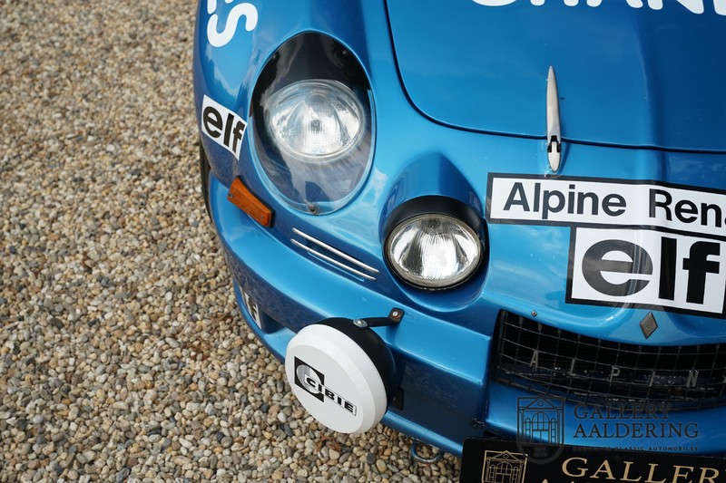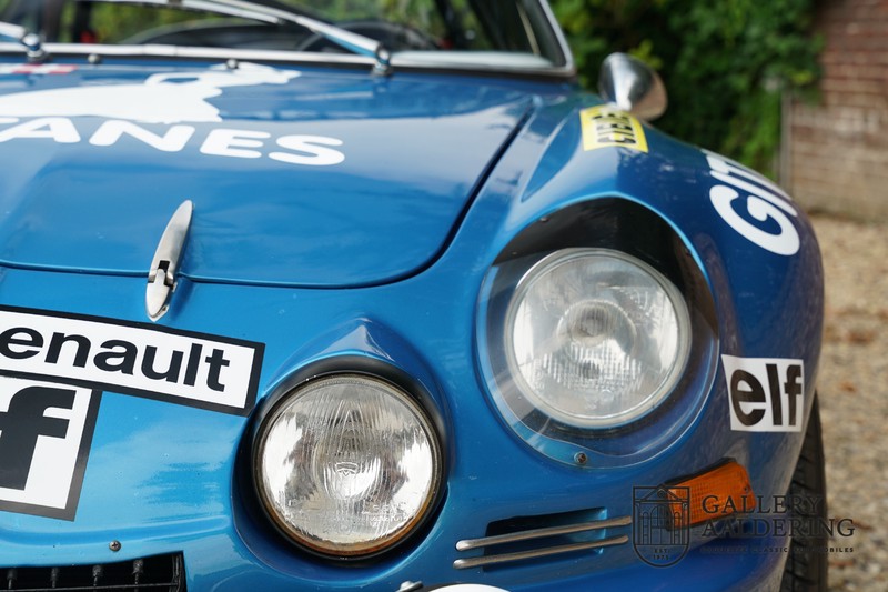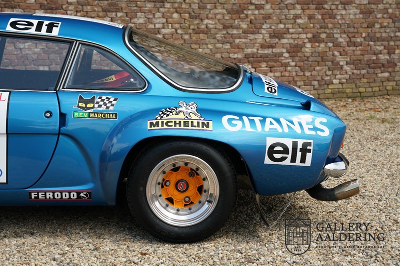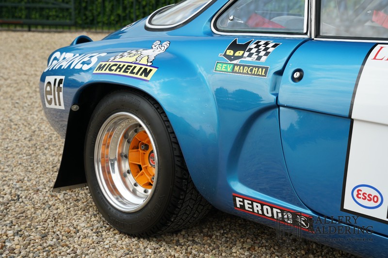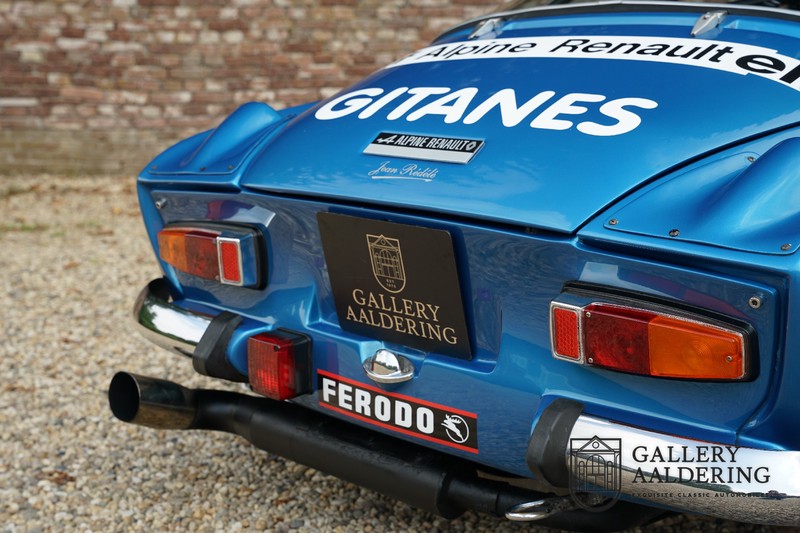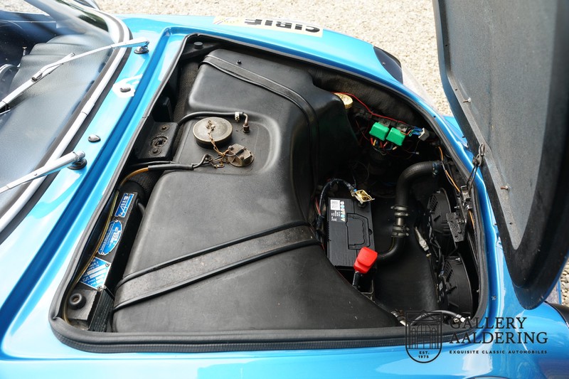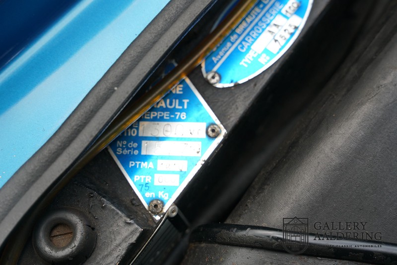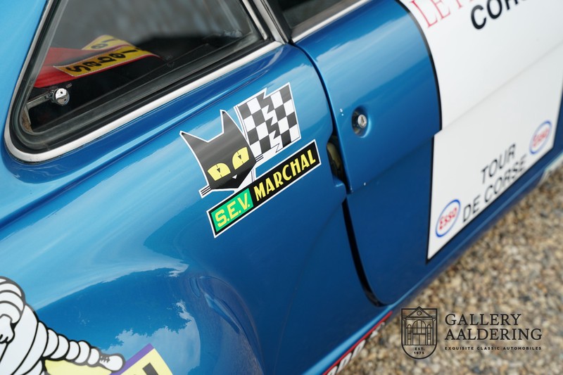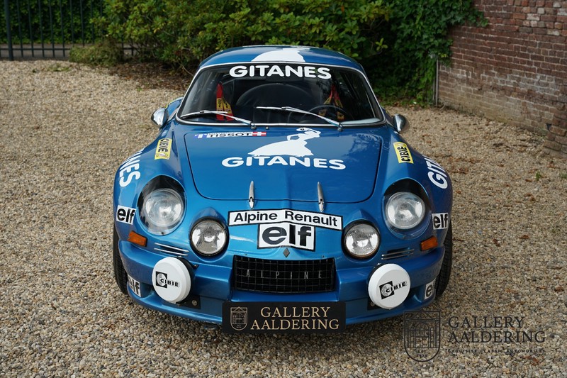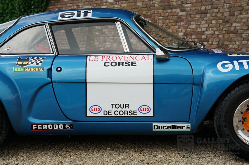 Dit exemplaar werd voor het eerst toegelaten tot het verkeer in Belgie en verkeert in prachtige conditie. De blauwe Alpine lak vormt een schitterend contrast met de oranje harten van de velgen. De aanwezige Gitanes livery maakt dat het lijkt dat de Alpine zo van de rallystage is doorgereden naar onze showroom. De carrosserie is deels van kunststof en verkeert in zeer goede en originele conditie. De blauwe lak is al eens opnieuw gespoten en ziet er nog steeds zeer goed uit. De velgen zijn recentelijk opnieuw opgemaakt en verkeren eveneens in zeer goede staat. De Gitanes livery is professioneel aangebracht en ziet er goed uit.