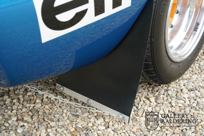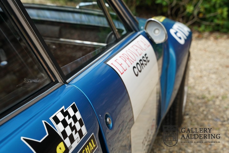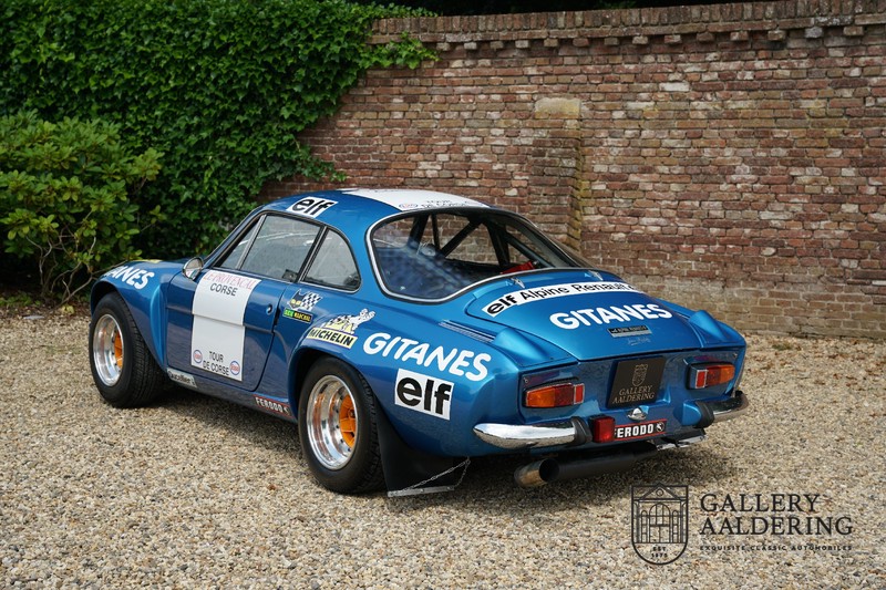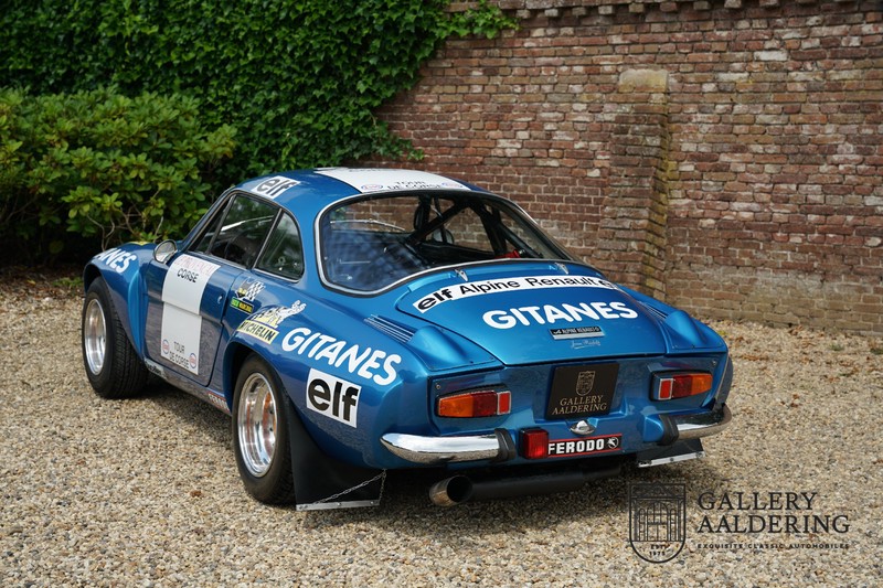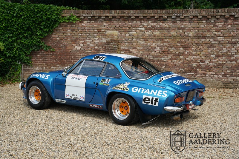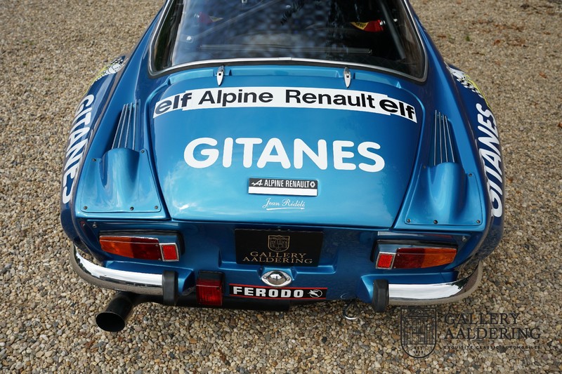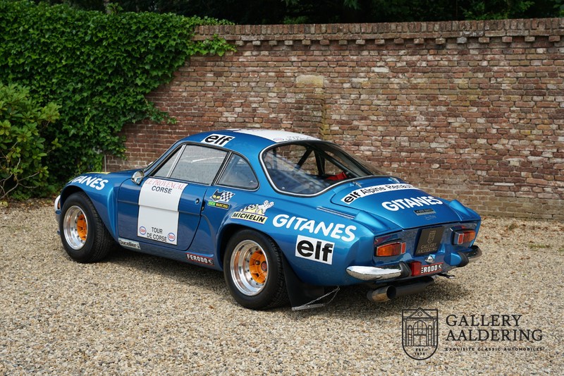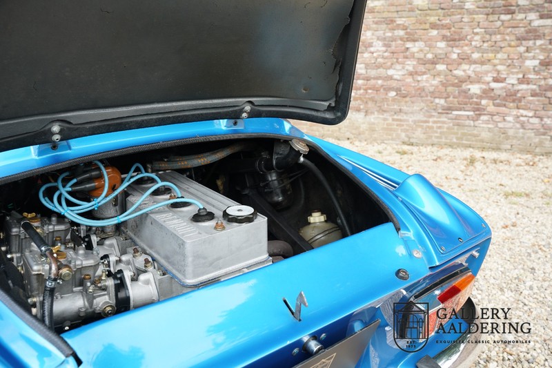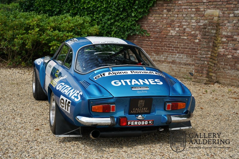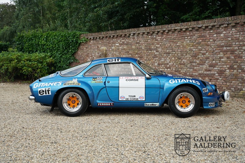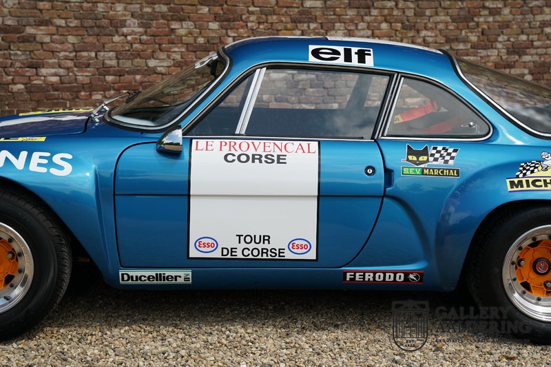 Dit exemplaar werd voor het eerst toegelaten tot het verkeer in Belgie en verkeert in prachtige conditie. De blauwe Alpine lak vormt een schitterend contrast met de oranje harten van de velgen. De aanwezige Gitanes livery maakt dat het lijkt dat de Alpine zo van de rallystage is doorgereden naar onze showroom. De carrosserie is deels van kunststof en verkeert in zeer goede en originele conditie. De blauwe lak is al eens opnieuw gespoten en ziet er nog steeds zeer goed uit. De velgen zijn recentelijk opnieuw opgemaakt en verkeren eveneens in zeer goede staat. De Gitanes livery is professioneel aangebracht en ziet er goed uit.