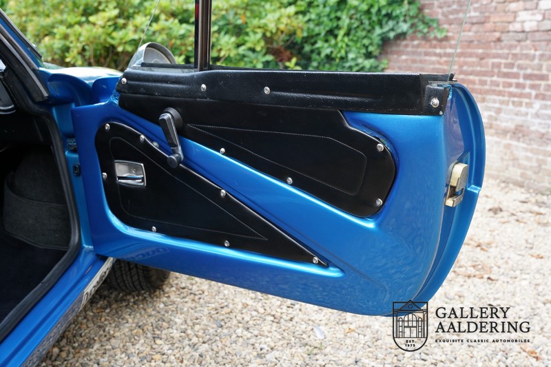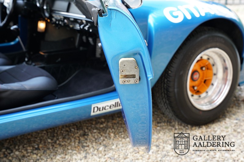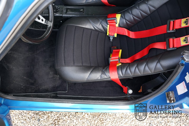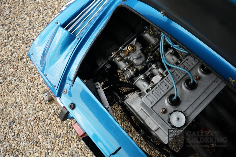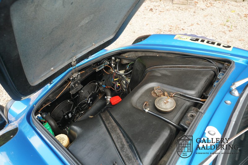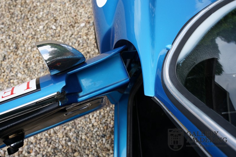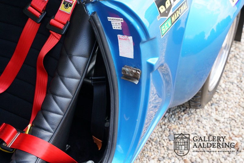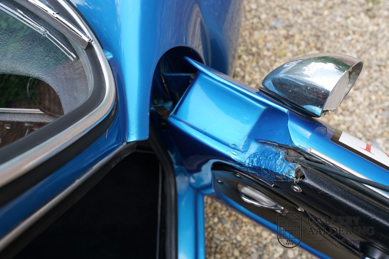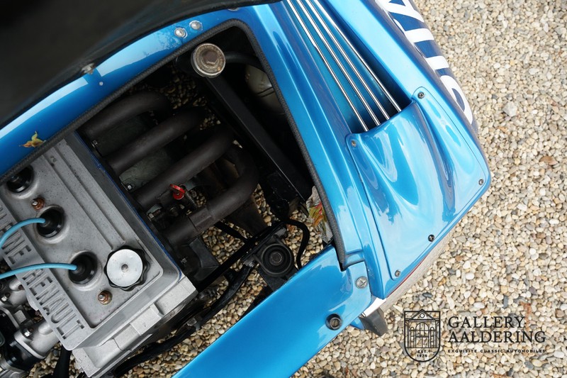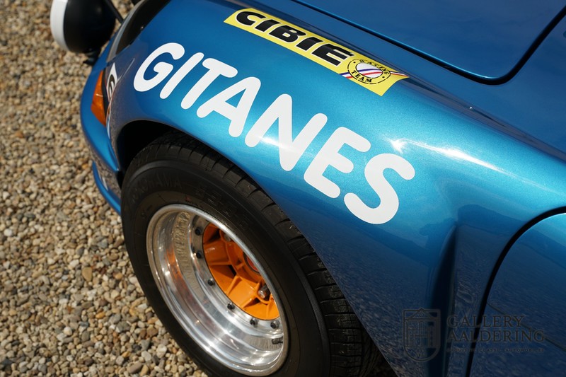 This example was admitted to traffic in Belgium for the first time and is in beautiful condition. The blue Alpine paintwork forms a beautiful contrast with the orange hearts of the rims. The present Gitanes livery makes it seem that the Alpine has just driven straight from the rally stage to our showroom. The body is partly made of plastic and is in very good and original condition. The blue paint has already been repainted and still looks very good. The rims have recently been repainted and are also in very good condition. The Gitanes livery has been professionally applied and looks good.