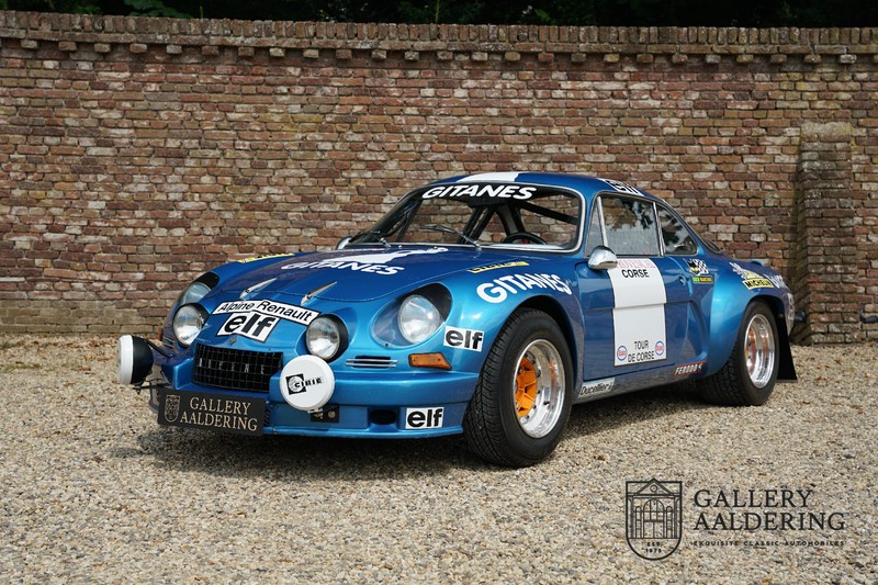 Das muss doch eines der legendärsten Rallyeautos aller Zeiten sein? Die Alpine A110, ein absolutes Meisterdesign von Michelotti. Dies ist ein Alpine 110 1600 in Gruppe 4-Spezifikation mit Gitanes-Lackierung. Das Auto ist mit einem Überrollkäfig ausgestattet und hat korrekte Gothi-Räder.