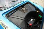 Het interieur in straatlegale rally auto’s is normaliter zeer spartaans. Het interieur in deze Alpine A110 is vanzelfsprekend ook niet het toonbeeld van automobiele luxe maar is wel voorzien van fraaie tapijten en goed zittende kuipstoelen. Er is een rolkooi aanwezig en het dashboard is voorzien van voldoende instrumenten om alle vitale organen van de A110 in de gaten te houden. Zoals het bij een rally auto betaamt zijn alle schakelaars duidelijk gelabeld. De stoelen bieden veel steun en passen perfect bij de rest van het interieur. Om er zeker van te zijn dat u absoluut vast in de stoel zit zijn er racegordels aanwezig.