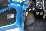 Der Innenraum in straßenzugelassenen Rallyeautos ist meist sehr spartanisch. Der Innenraum in diesem Alpine A110 ist natürlich nicht der Inbegriff von automobilem Luxus, aber er ist mit schönen Teppichen und gut sitzenden Schalensitzen ausgestattet. Es gibt einen Überrollkäfig und das Armaturenbrett ist mit ausreichend Instrumenten ausgestattet, um alle lebenswichtigen Organe des A110 im Auge zu behalten. Wie es sich für ein Rallyeauto gehört, sind alle Schalter eindeutig beschriftet. Die Sitze bieten viel Halt und passen perfekt zum Rest des Interieurs. Damit Sie absolut sicher im Sitz sitzen, sind Renngurte erhältlich.