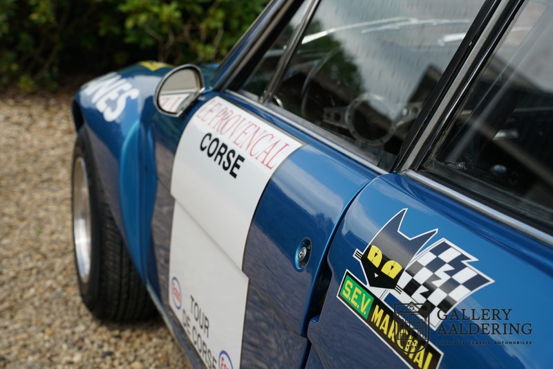 Surely this has to be one of the most iconic rally cars of all time? The Alpine A110, an absolute master design by Michelotti. This is an Alpine 110 1600 in Group 4 specification with Gitanes livery. The car is equipped with a roll cage and has correct Gothi wheels.