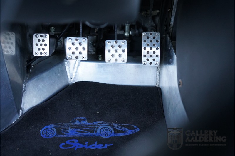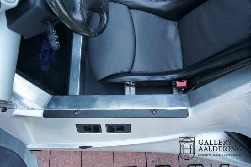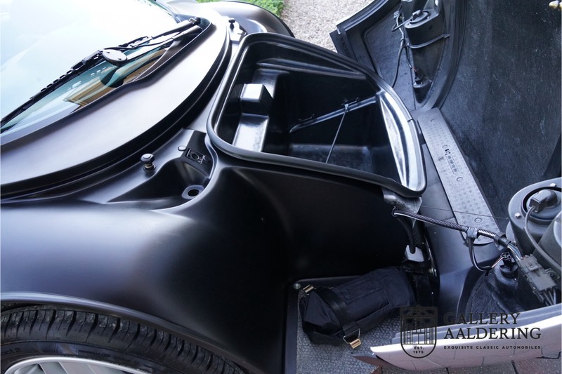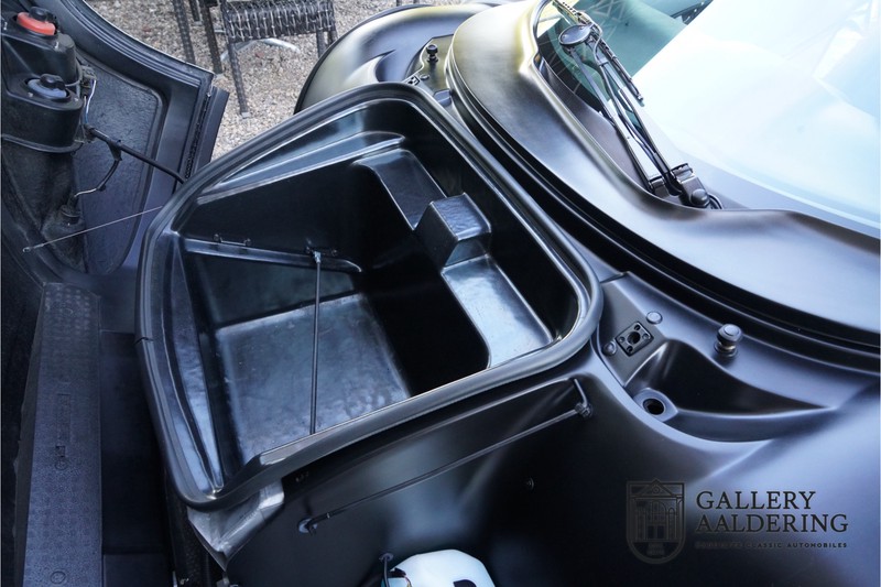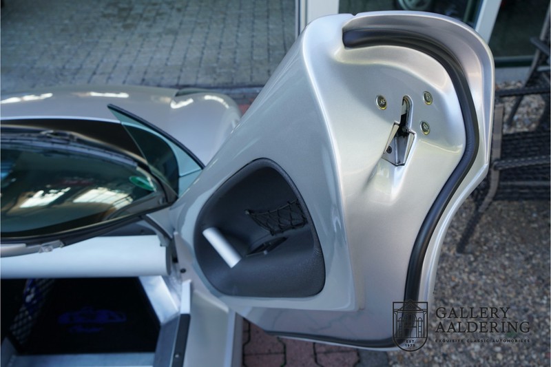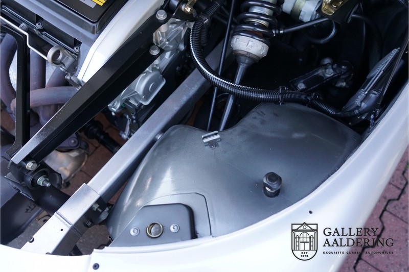 The Renault-Sport-Spider is typically a car never to be repeated and was only fully understood long after production ceased. In the 90’s car manufacturers were still able to design a car with only one thought in mind: Drive ecstasy! What with today’s strict emission and pedestrian safety demands one thing is sure; a pure sports car like the Renault Sport Spider will never hit the market again. Let’s not prevaricate, Renault had pure bad luck at the introduction of the Sport Spider. Almost simultaneously Lotus introduced its Elise which weighed a mere 752 kg in its lightest configuration. The 938 kg Renault Sport Spider seemed a bit heavy by comparison. The Renault Sport Spider did have a number of advantages over the Lotus. You could order your Spider without a front screen, it is a proper open 2-seater, the boot space is more accessible and does not get as hot, the driving position is better and above all the Renault Sport Spider engine is a lot stronger than the Lotus’s Rover K-series one. Another advantage over the Lotus is that a Renault Sport Spider is a lot rarer than a first generation Elise. We can now say that in hindsight people who were brave enough to order a Renault Sport Spider in the 90’s have come good. After 20 years the Renault Sport Spider has become a fixed feature in the lightweight sports car class. Values have always been good and of late are rising steadily. Of the planned 2,000 cars only 1,725 were actually built, of which 80 were used in a special race class. Our Renault Sport Spider is a fully spec’d car. In “Renault Sport Spider speak” that means to addition of a front screen and steering wheel airbag. Renault had a fairly extensive program of factory accessories for the Spider. This car for instance has the optional 16” wheels and there is even an accompanying file listing the accessories is present! The previous owner also accessorised the car further with an Elia sports exhaust, a full hood, a decal set inspired by the Spider Trophy and a tonneau cover. It is not just the accessories that make this car; it is also in excellent condition and has the original car wallet containing its manual and service book. A spare key is also included. In 1999 this Renault Sport Spider entered mainstream traffic in Germany. It is therefore one of the very last Spiders built. The car is in extraordinary great shape. The “Gris Titane” is in very good condition as is the fibreglass bodywork. The bodywork is undamaged and aligns correctly. The upward tilting doors also open and shut perfectly with ease. Similarly the interior trim is in very good shape. The Recaro seats are pristine, all interior paneling has been very well looked after and all instruments are in good working order. Underneath the car all is well. The original flat bottom is undamaged. The engine and gearbox are as excepted: Bone dry. The low 29,934 mileage together with the excellent maintenance record provide top-quality mechanical condition for this Renault Sport Spider. The 2.0 F7R 16V engine and manual gearbox come straight out of the iconic Renault Clio Williams. Looking back we surely can state that the 90’s were a very good era for Renault. The engine runs a treat and sounds fantastic. The transmission allows for smooth, precise and easy gear changes. The 2.0 16V engine delivers 150 Hp and gets from 0 -100 km/hr in 6.9 seconds. It has a top speed of 215 km/hr. The car’s exception condition is exemplified by the pristine condition of the engine bay. This is without doubt a top quality Renault Sport Spider with a lovely low mileage. It has a complete provenance and truly has nothing left wanting attention. A very interesting car for the serious collector as well as for someone who just wants one of the very best Renault Sports Spider’s around! Gallery Aaldering is Europe’s leading Classic Cars specialist since 1975! Always 400 Classic and Sportscars in stock, please visit www.gallery-aaldering.com for the current stock list (all offered cars are available in our showroom) and further information. We are located near the German border, 95 km from Düsseldorf and 90 km from Amsterdam. So easy traveling by plane, train, taxi and car. Transport and worldwide shipping can be arranged. No duties/import costs within Europe. We buy, sell and provide consignment sales (selling on behalf of the owner). We can arrange/provide registration/papers for our German (H-Kennzeichen, TÜV, Fahrzeugbrief, Wertgutachten usw.) and Benelux customers. Gallery Aaldering, Arnhemsestraat 47, 6971 AP Brummen, The Netherlands. Tel: 0031-575-564055. Quality, experience and transparency is what sets us apart. We look forward to welcoming you in our showroom