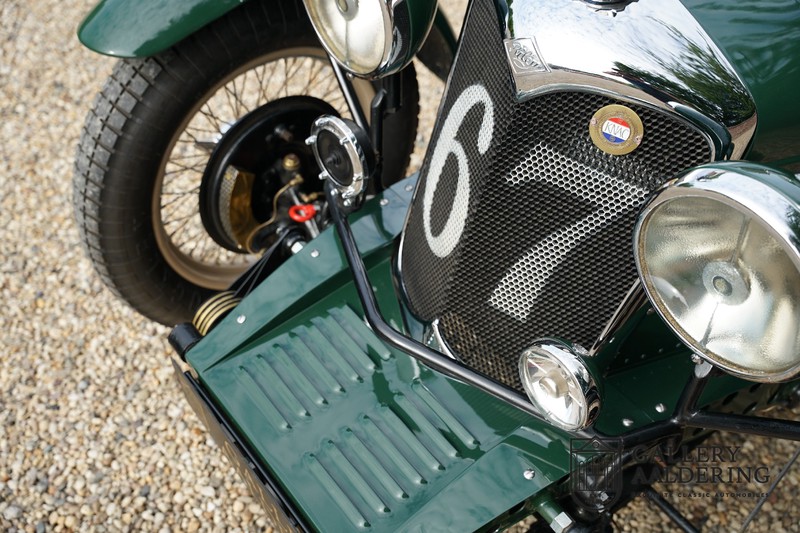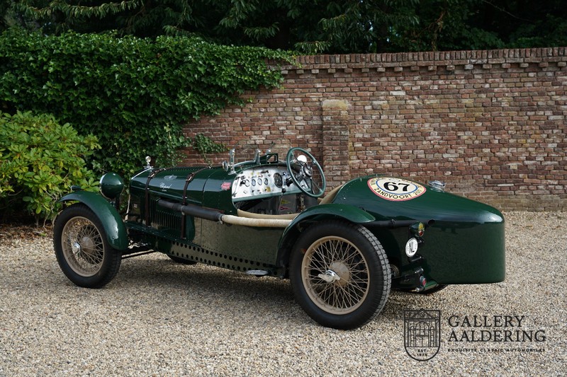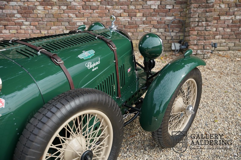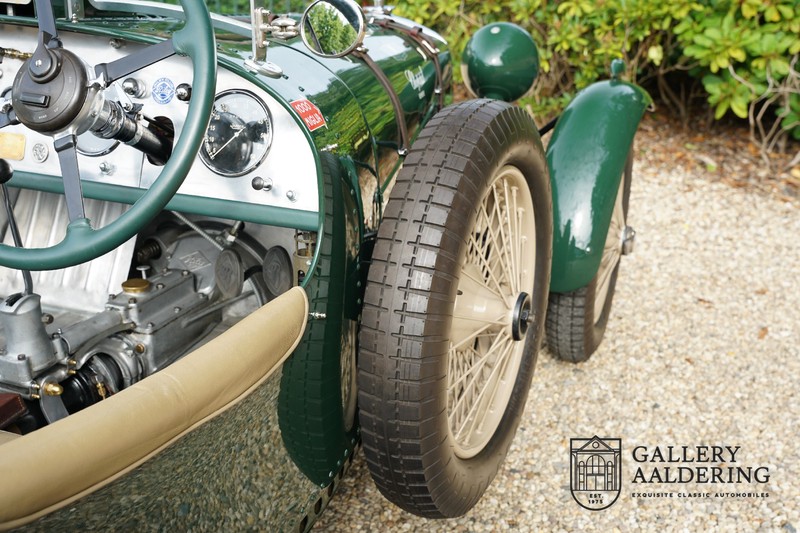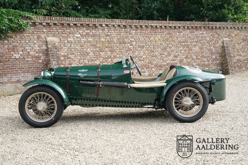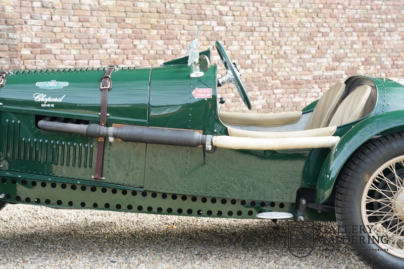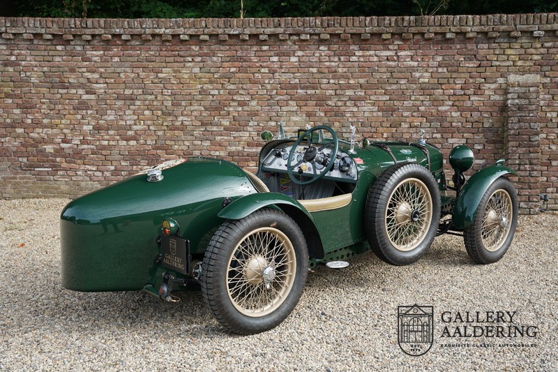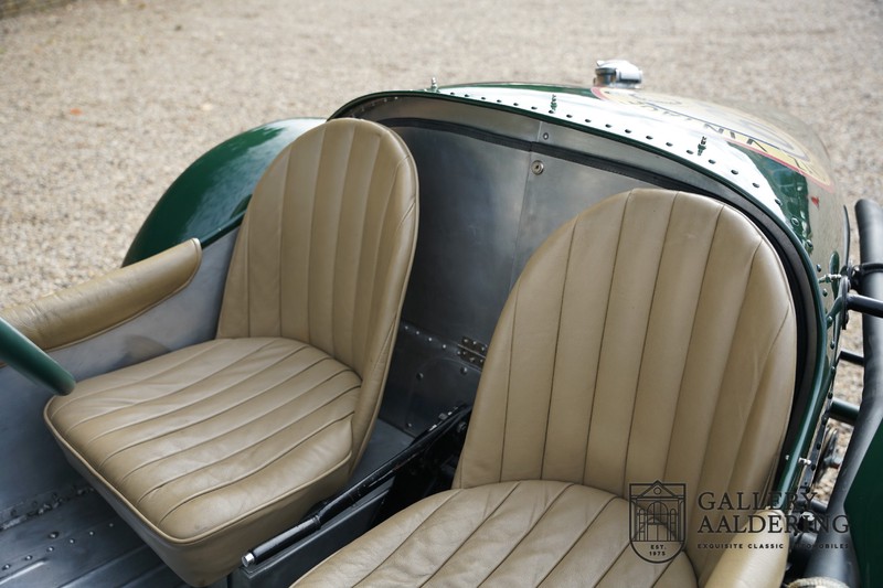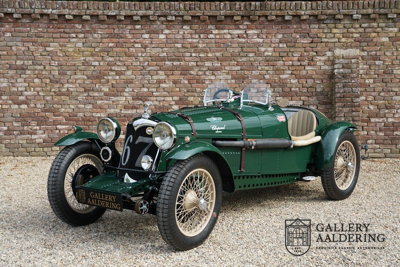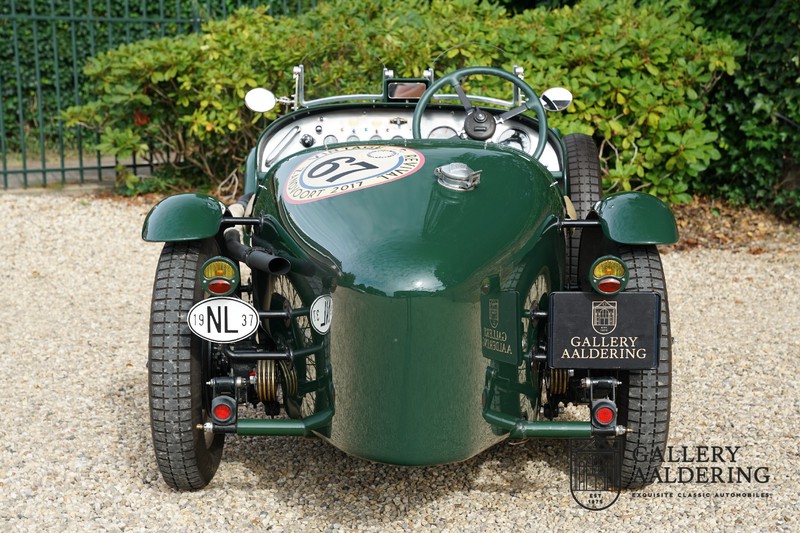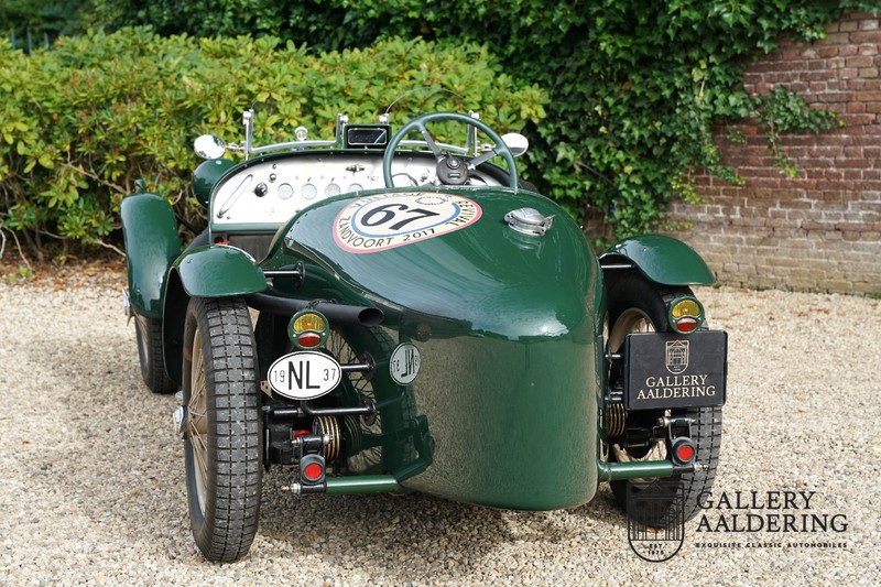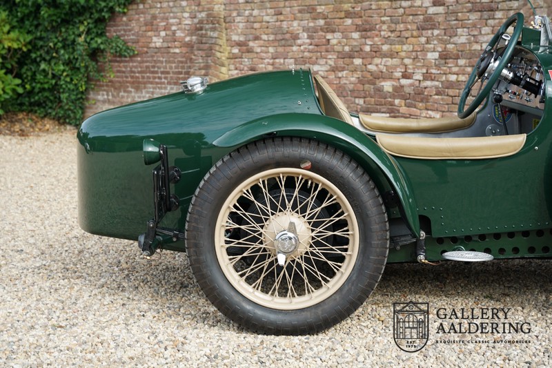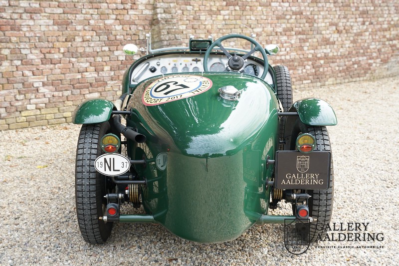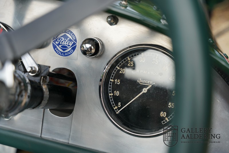 Het betreft hier een prachtige Riley 9 HP “Brooklands Special” uit 1937. De auto kwam als een Riley 9HP Saloon ter wereld en werd in 2016 professioneel omgebouwd aan de hand van tekeningen om een zo natuurgetrouwe reproductie van het origineel te maken. De werkzaamheden zijn destijds op zeer hoog niveau uitgevoerd en zien er dan ook uit om door een ringetje te halen.