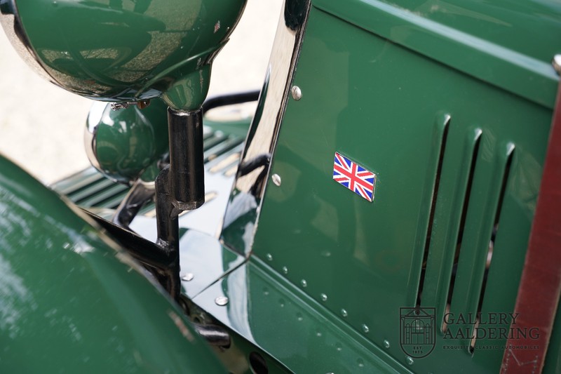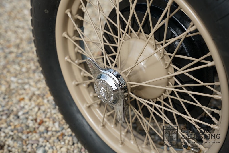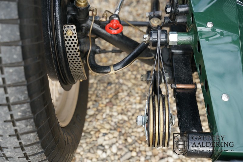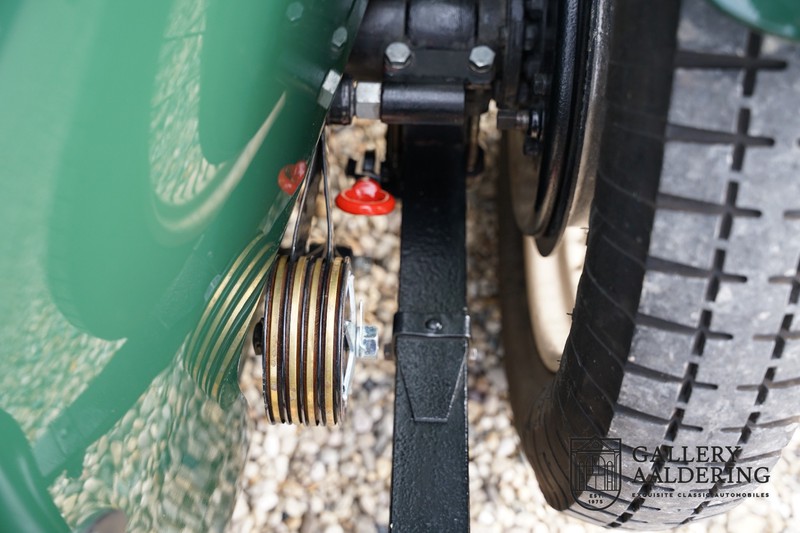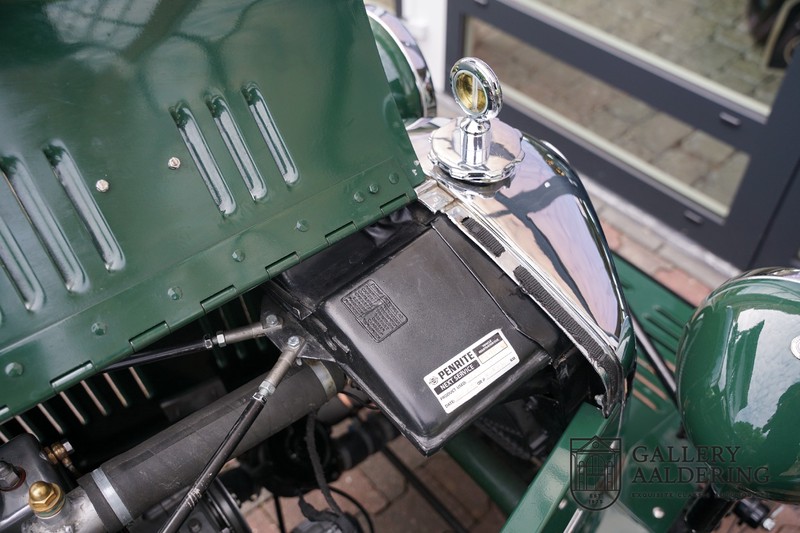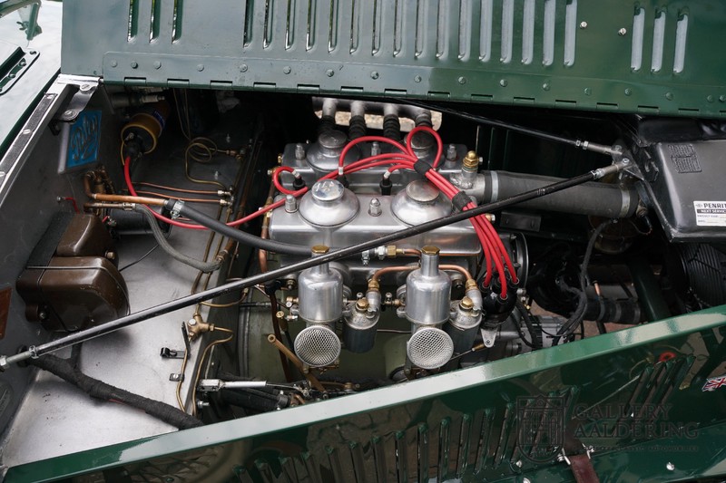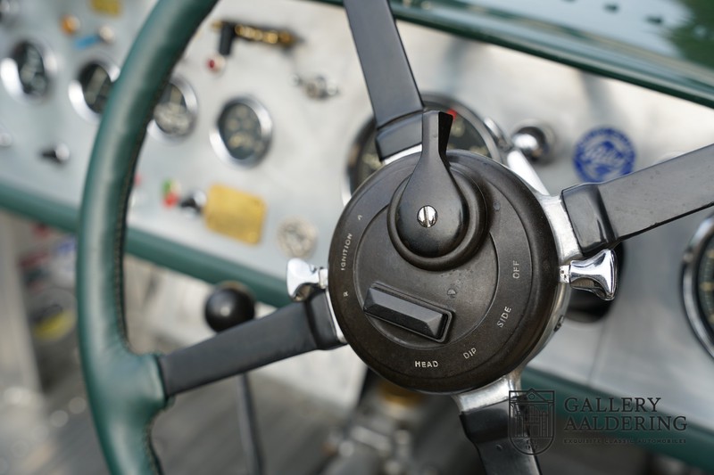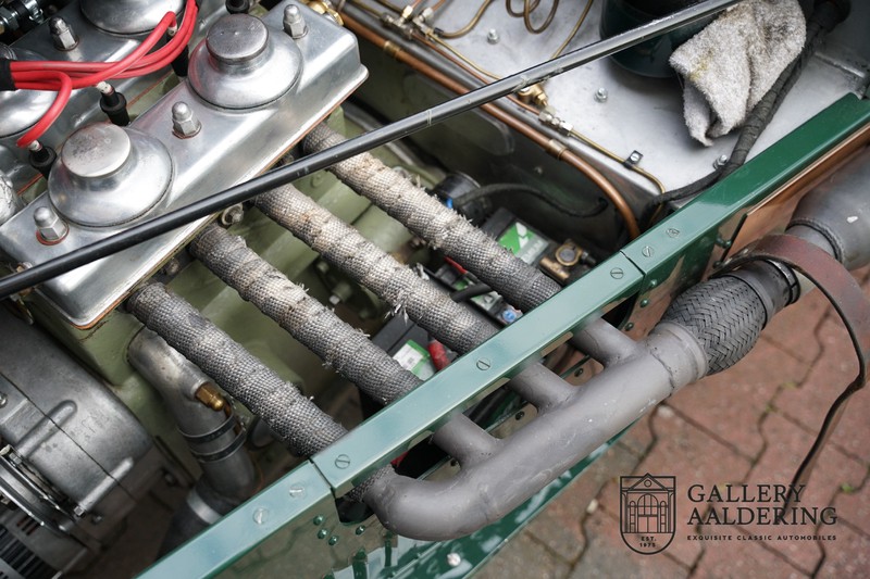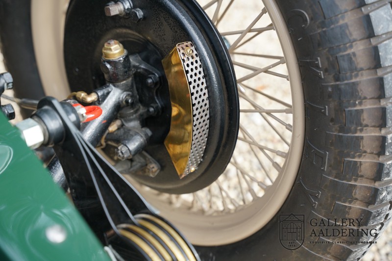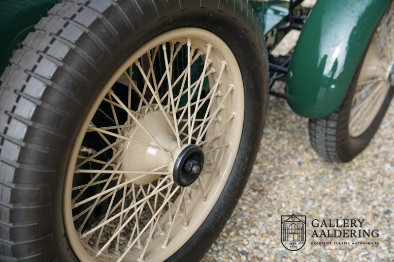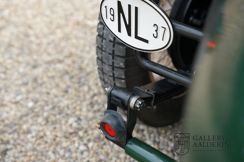 The body looks beautiful and has been expertly built with the right details for that period such as round head rivets and a beautiful finish of the body. The bodywork, therefore, looks like it was built yesterday. The used sheet metal is nice and thin and the fits are correct. The car is painted in a beautiful green colour that fits well with the model and the appearance of the car. The exhaust that runs on the side of the cabin completes the picture. The car is also equipped with beautiful 2.5-inch wide and 19-inch tall wire wheels with good tires in the correct sizes.