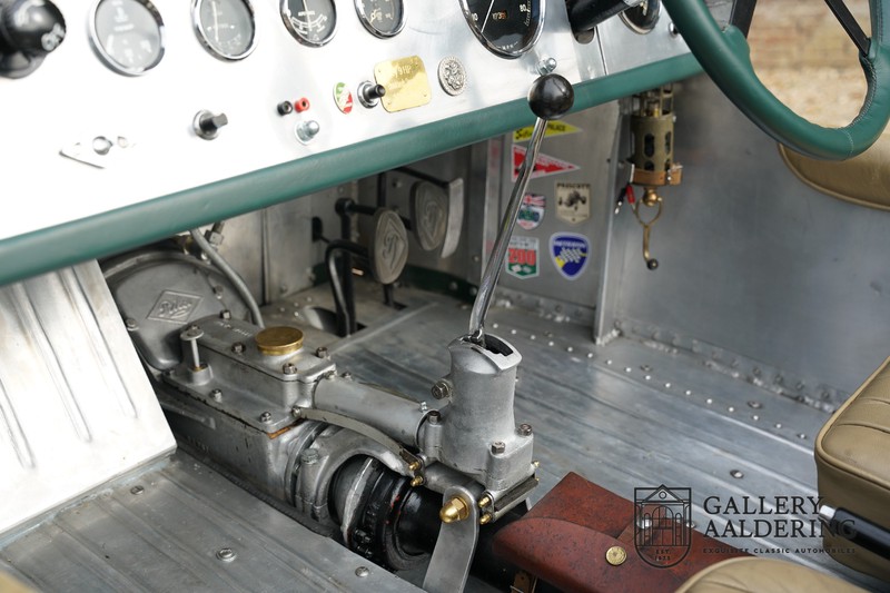 Das Interieur sieht wunderschön aus, die Jaeger-Instrumente sind wunderschön, die Sitze und die Innenseite der Kabine sind mit beigem Leder bezogen, das sich ebenfalls in sehr gutem Zustand befindet. Im Übrigen ist der aus weißem Aluminium gefertigten Innenraum des Riley spartanisch gestaltet, wie man es von einem echten Rennwagen erwartet. Die Pedale sind schön dicht beieinander positioniert, sodass Sie immer die perfekte Kontrolle über das Auto haben.