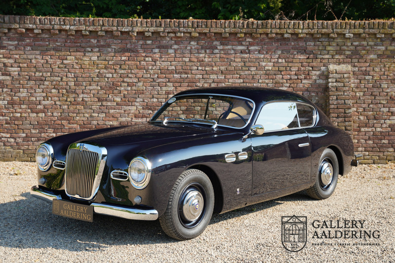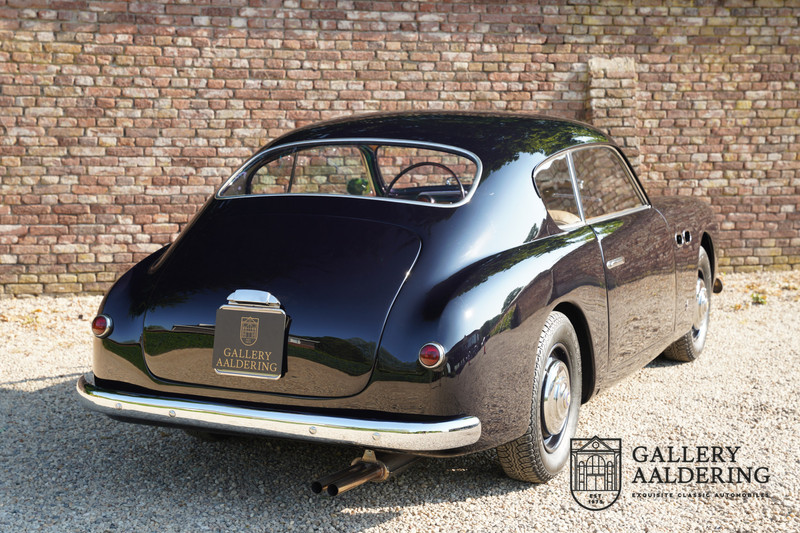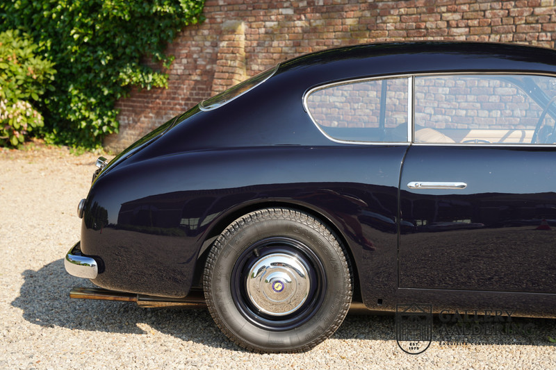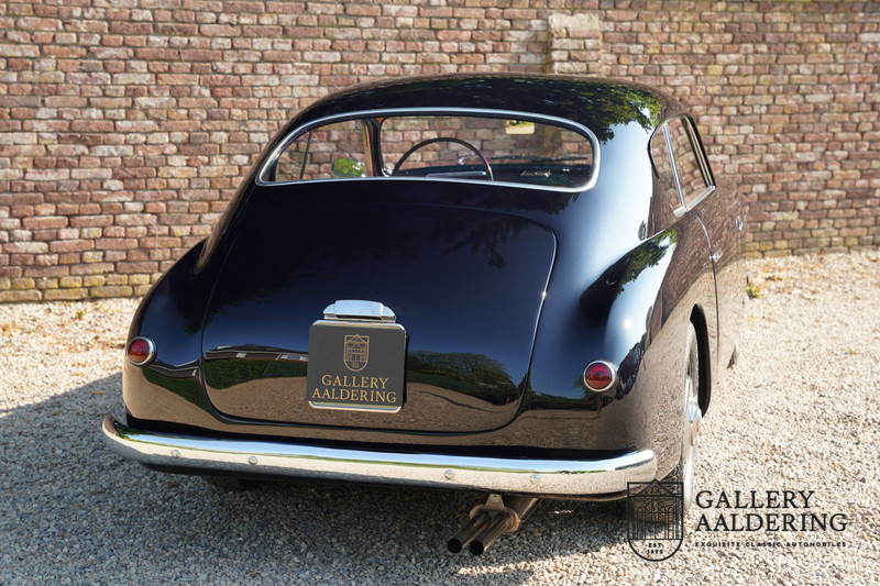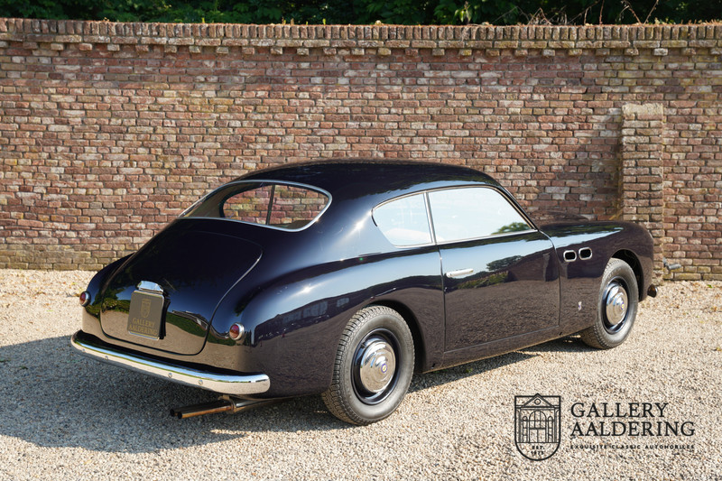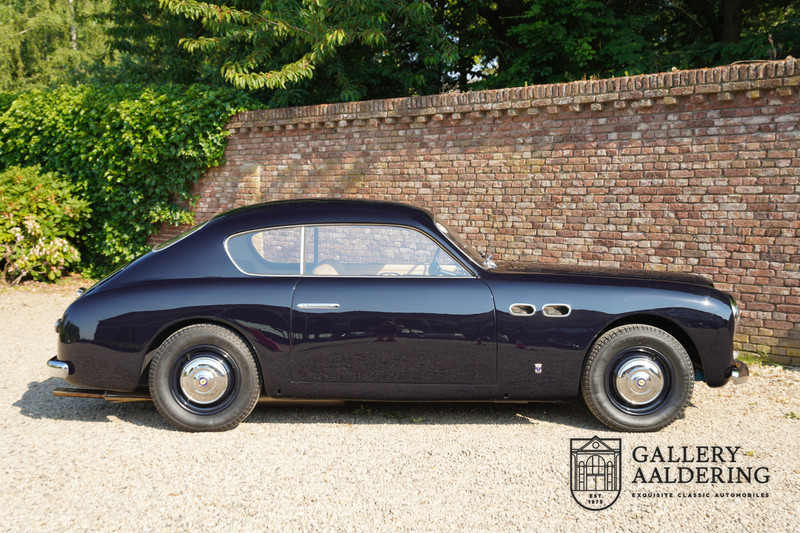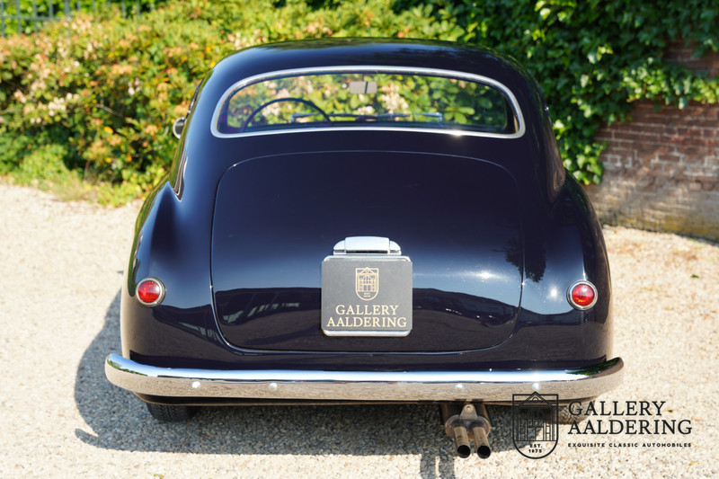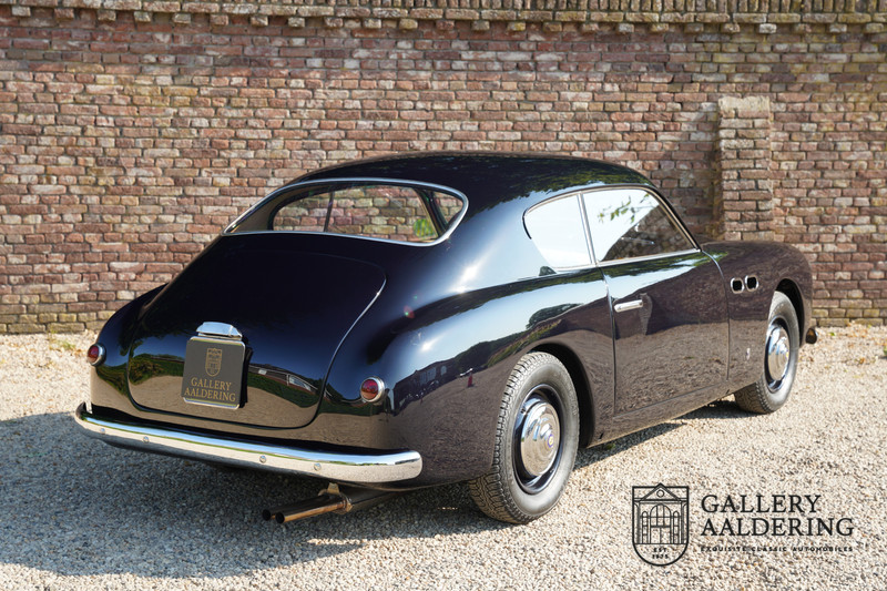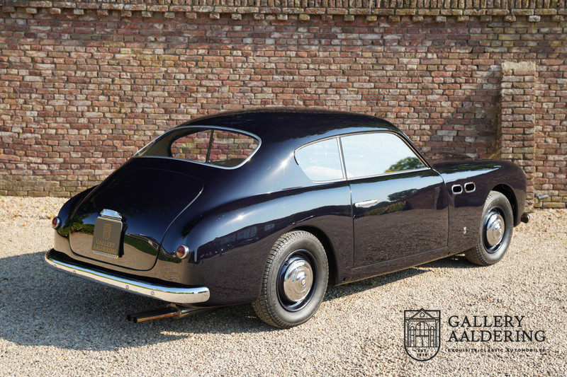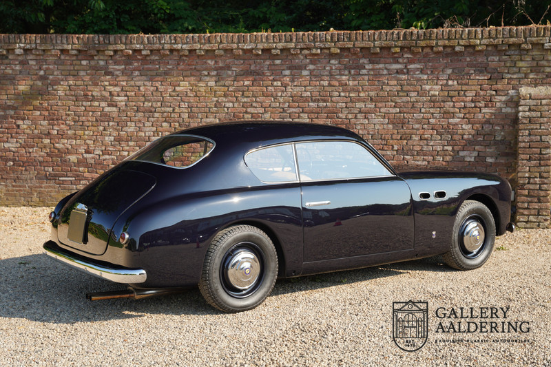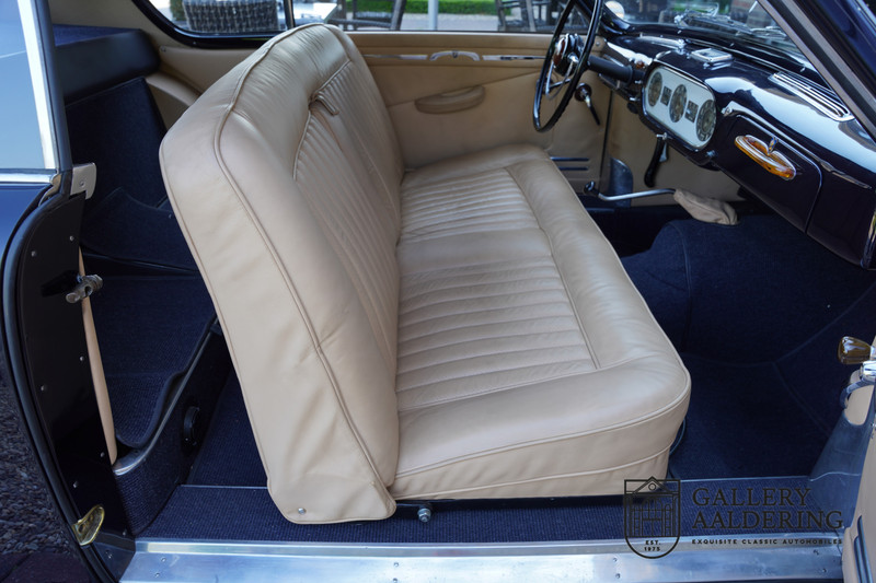 One of those 20 cars is the Daina you see offered for sale here. The bodywork is from Stabilimenti Farina. The coupe, with independent front suspension and a solid rear axle, may appear black in the photos, but it is actually a very dark blue. Extremely stylish!