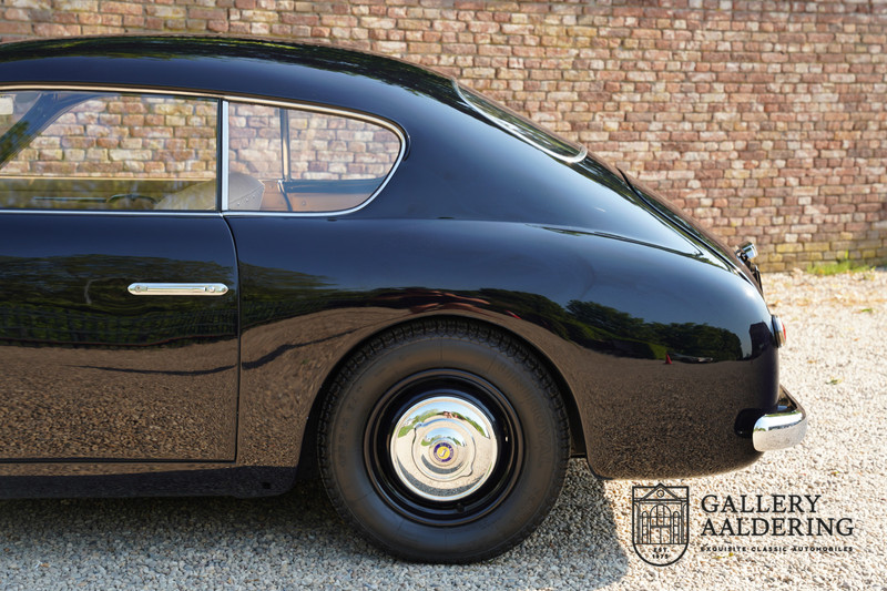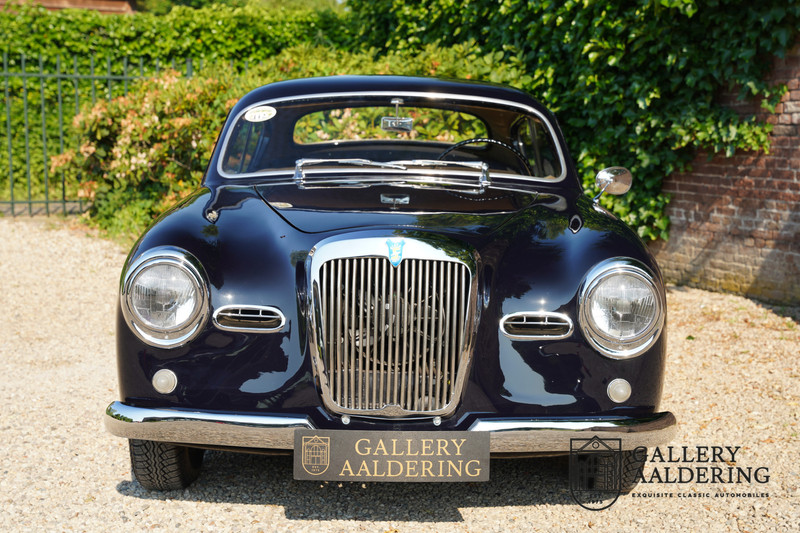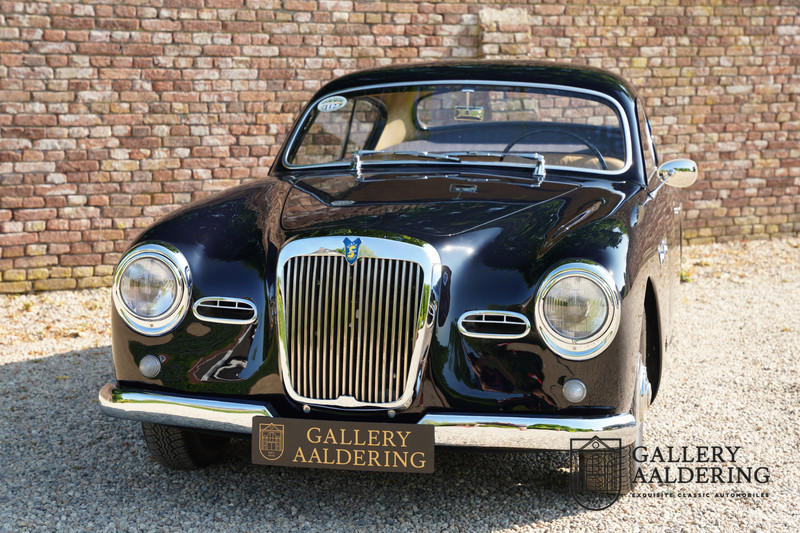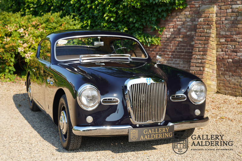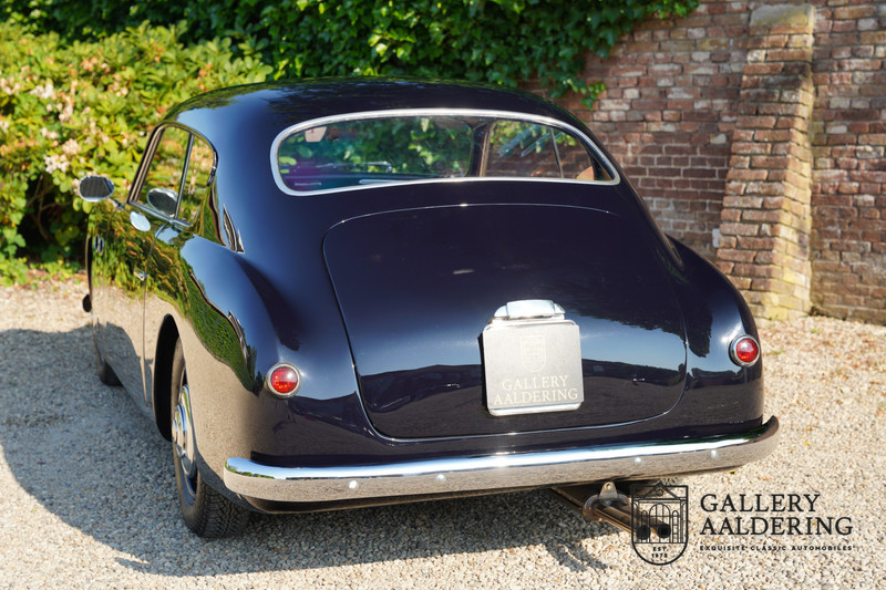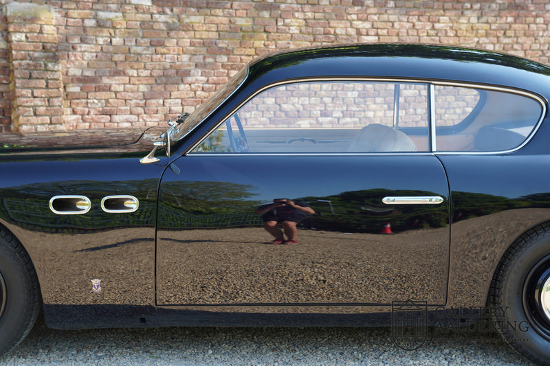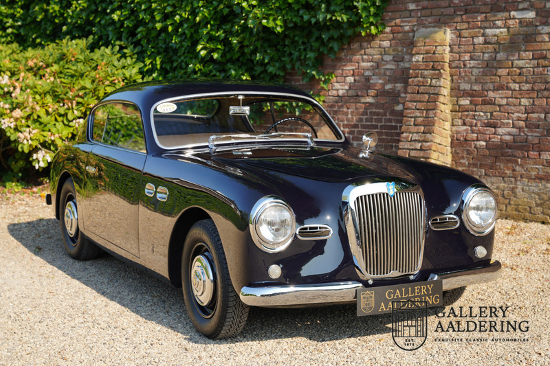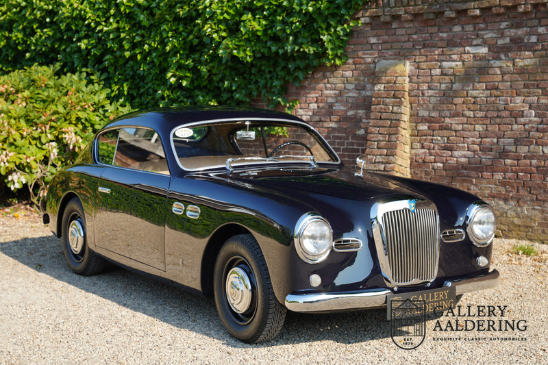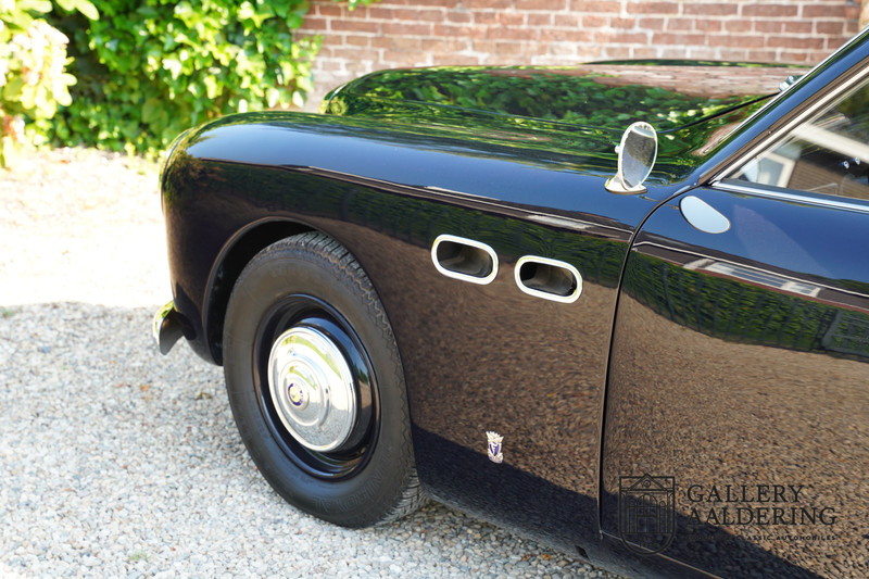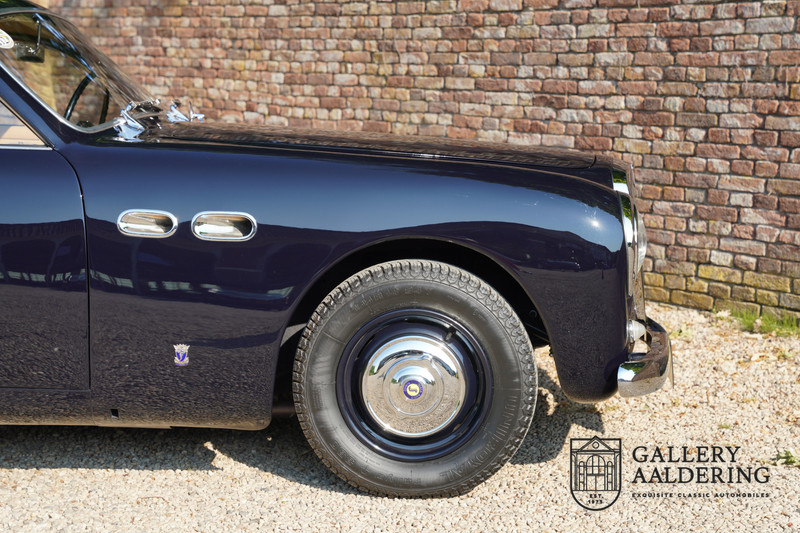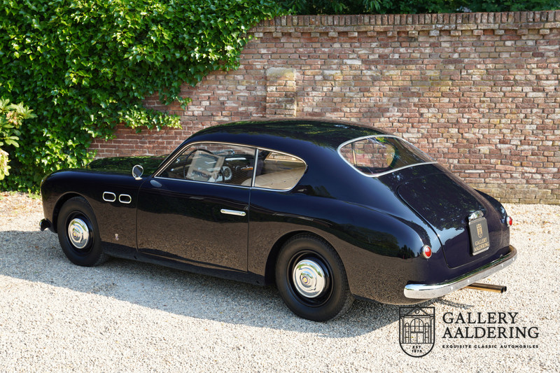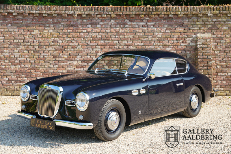 One of those 20 cars is the Daina you see offered for sale here. The bodywork is from Stabilimenti Farina. The coupe, with independent front suspension and a solid rear axle, may appear black in the photos, but it is actually a very dark blue. Extremely stylish!