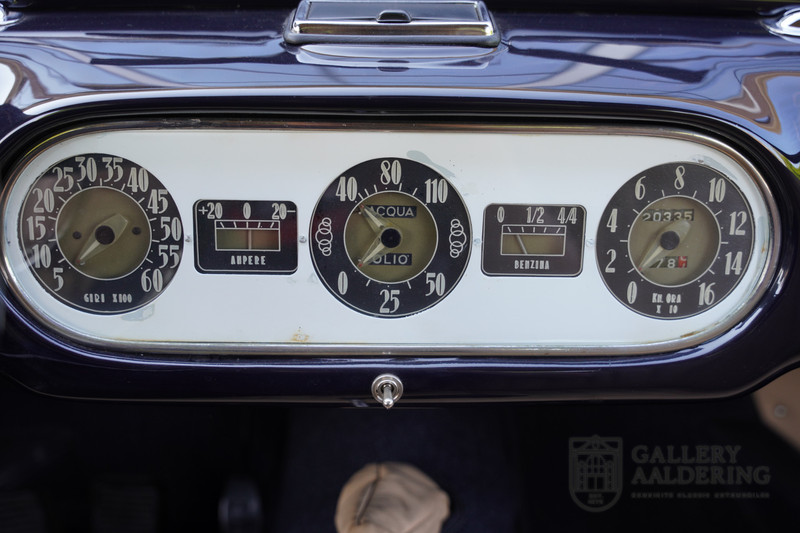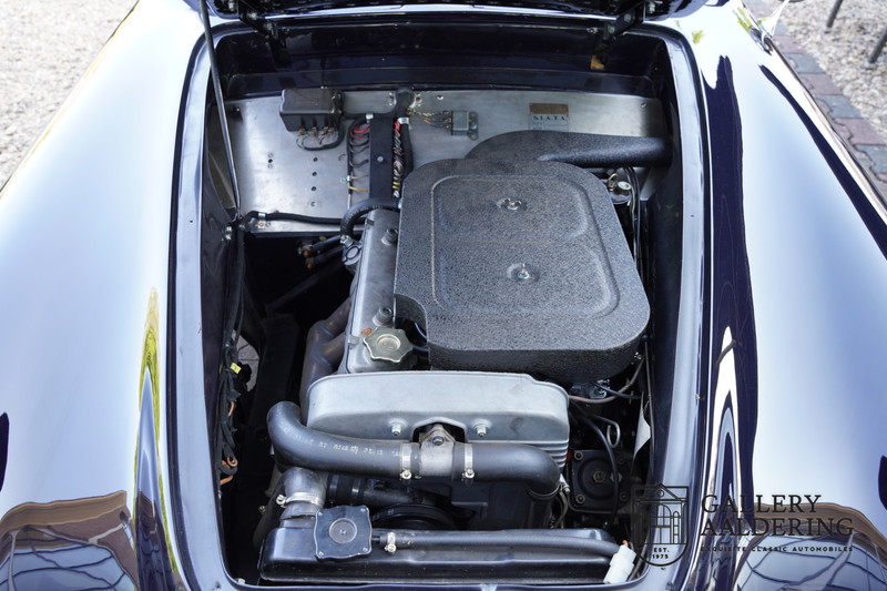 Like many cars of this kind, the car moved from Italy to America at some point in its history. In 2004, the car returned to Europe to undergo a complete and thorough restoration. While this car originally came with a 1400 cc engine producing 65 hp and a four-speed gearbox, the restoration opted for a Fiat Lampredi engine of 1,995 cc. This twin-cam engine is already much more powerful than the original in its tamed form. However, it is not a standard four-cylinder engine. With a classic tuning recipe, in the spirit of Siata itself, it now has two double Weber carburettors, a stainless steel exhaust system, and many more upgrades, resulting in a power output of 130 hp. You will understand that a four-speed gearbox was no longer sufficient for this power, so a five-speed transmission is now present.