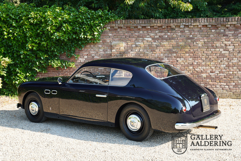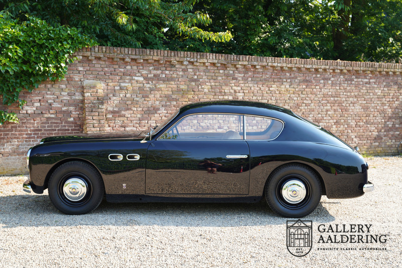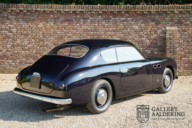 Eines dieser 20 Autos ist also der Daina, den Sie hier zum Verkauf sehen. Die Karosserie stammt von Stabilimenti Farina. Das Coupé mit Einzelradaufhängung vorn und starrer Hinterachse mag auf den Fotos schwarz aussehen, in Wirklichkeit ist das Auto jedoch sehr dunkelblau. Besonders stilvoll!