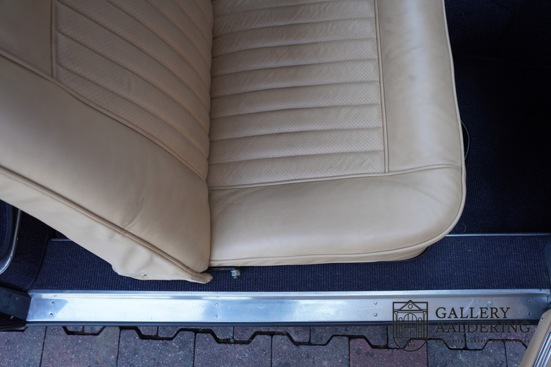 The bodywork has been completely restored to concours condition, and it shows. The body is incredibly smooth and beautiful, and the paintwork has clearly been done by true professionals. All the chrome work is stunning, as are the colour-coded steel wheels, featuring elegant and subtle hubcaps. The interior matches the exterior, beautifully restored and renovated, and in excellent condition. The beige leather complements the dark navy blue paint beautifully.