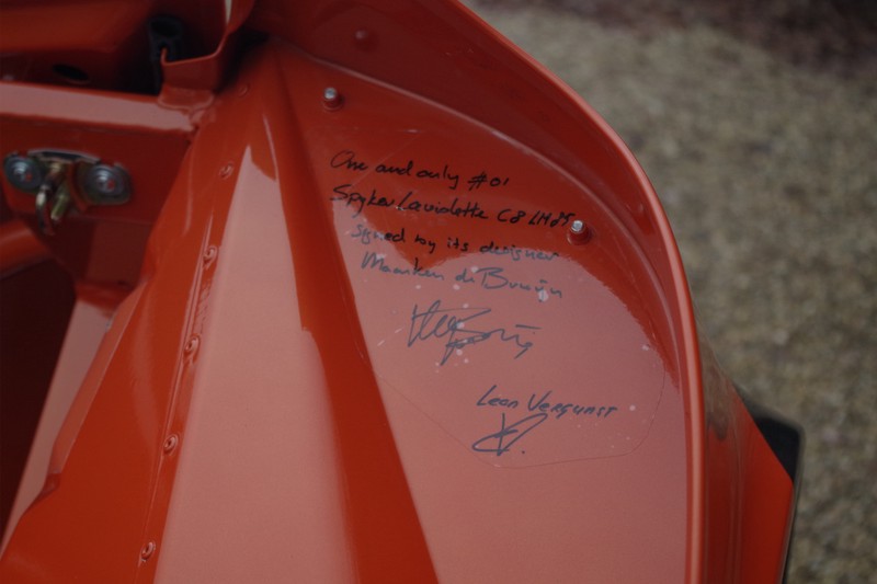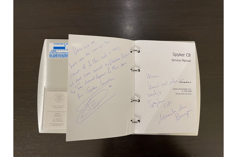 Dass dieses Auto perfekt dokumentiert und mit all den Sachen ausgestattet ist, die den Besitz eines Spyker zu einem einzigartigen Erlebnis machen sollten, kann daher als Untertreibung bezeichnet werden. Bei der Driver Parade in Le Mans 2009 wurden nicht nur die Polo-Caps und -Shirts signiert, sondern auch das Auto selbst. Maarten de Bruijn und Tom Coronel unterzeichneten beide das Auto auf der Innenseite der Haube.