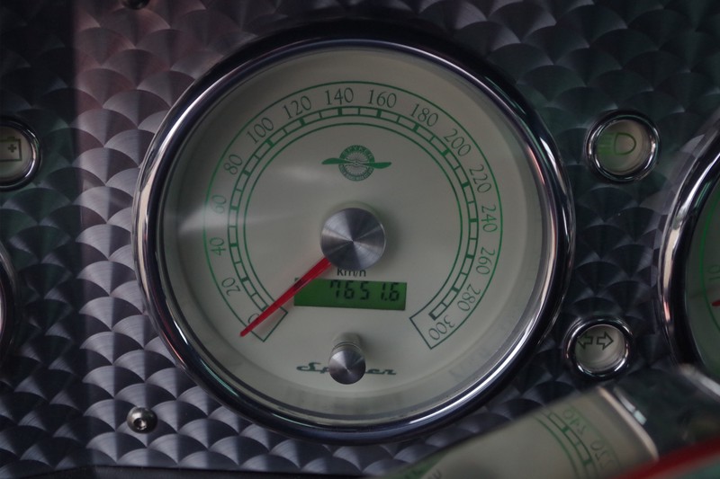 The car’s interior is also pure art and is as good as new. The steering wheel has an airbag courtesy of Lamborghini due to the changed laws prohibiting the use of the brilliant air-bagless characteristic 4-spoke steering wheel. The gauges all carry the fine Spyker branding and keep you abreast of the car’s vital functions during your trip. The instruments light up in eye-catching green. The seats are really comfortable made of leather sides and Alcantara centres are adorned with diamond stitching. The dashboard features brushed aluminium. The openwork gear mechanism is probably one of the more eye-catching features. Spyker was as a newcomer instantaneously as famous as Ferrari thanks to this kind of brilliant design. It not only looks great it works flawlessly as well, which is quite important in a purebred sports car.