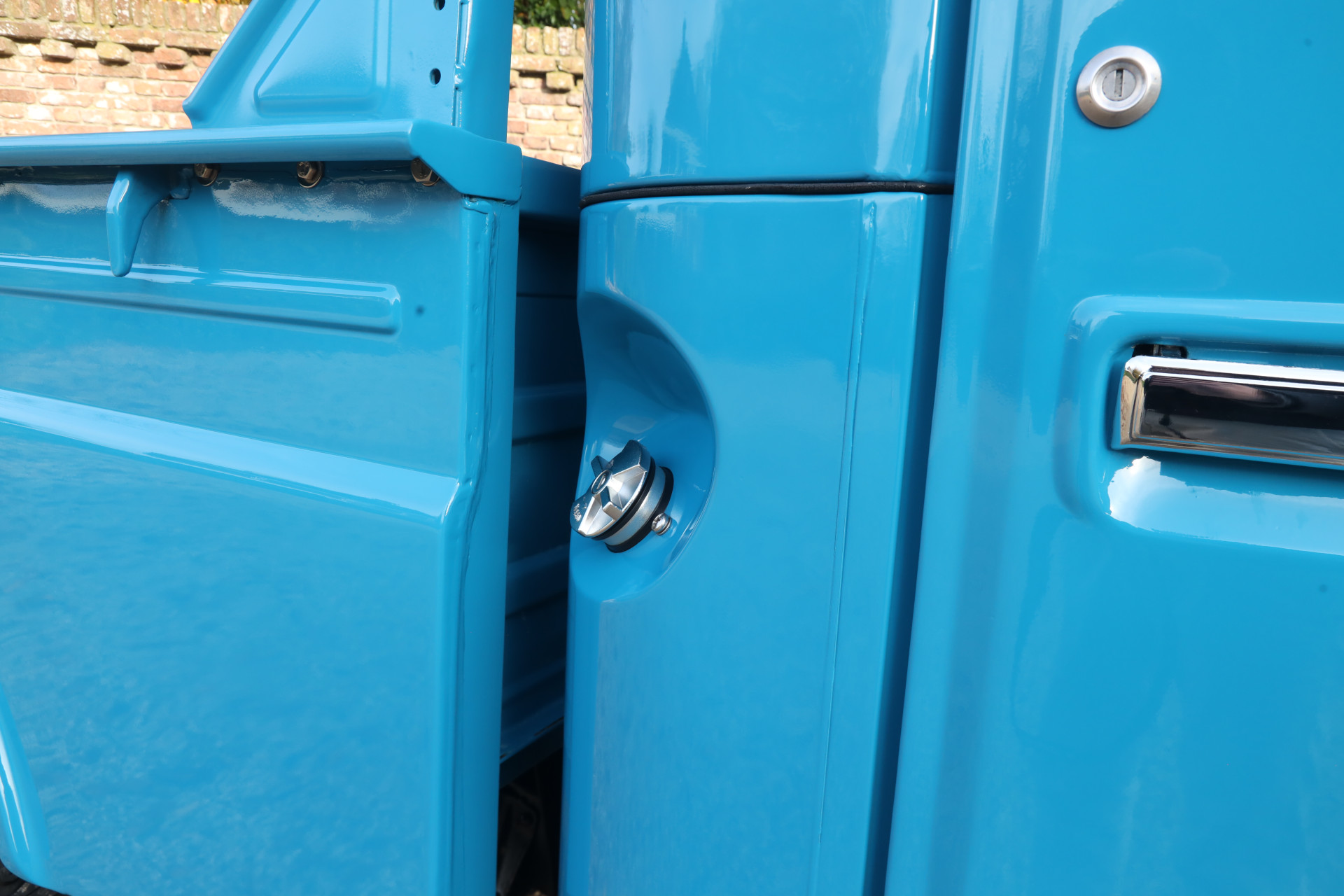 Dieser BJ45 wurde kürzlich kompromisslos restauriert und technisch revidiert. Der Rahmen wurde gestrahlt und zweifach beschichtet, während die gesamte Karosserie ebenfalls gestrahlt und professionell neu lackiert wurde. Das Ergebnis ist ein Lackbild, das den Charakter des Fahrzeugs eindrucksvoll unterstreicht.