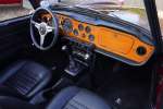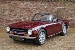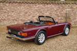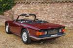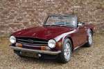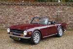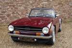 Onze prachtige Triumph, uitgevoerd in Damson Red met bijpassende zwarte bekleding, is een zeer fraaie TR6 om te zien. Hij oogt sportief, maar heeft ook een statige uitstraling, toch? U mag het zeggen, maar laten we het erop houden dat de kleurencombinatie hem erg goed staat. Bovendien is deze Triumph ‘body-off’ gerestaureerd en is de techniek gereviseerd door specialisten. De motor is voorzien van een Kent Cam TH5 Fast Road nokkenas met bijbehorende klepveren. Daarnaast zijn er diverse modificaties aangebracht zoals een verbeterd koelsysteem.