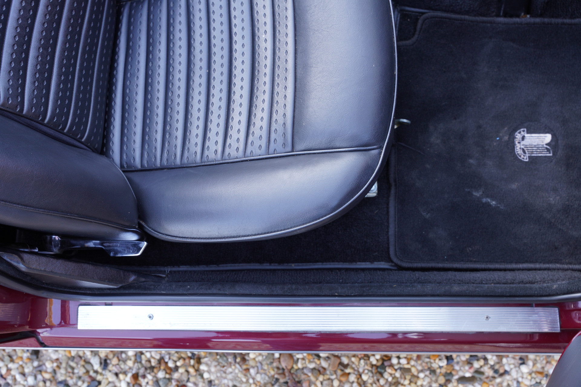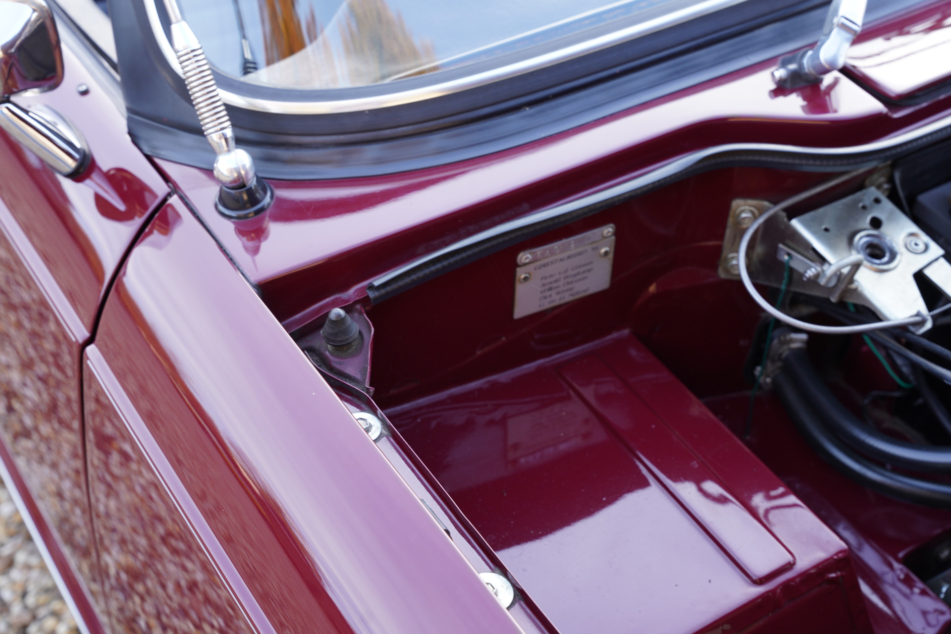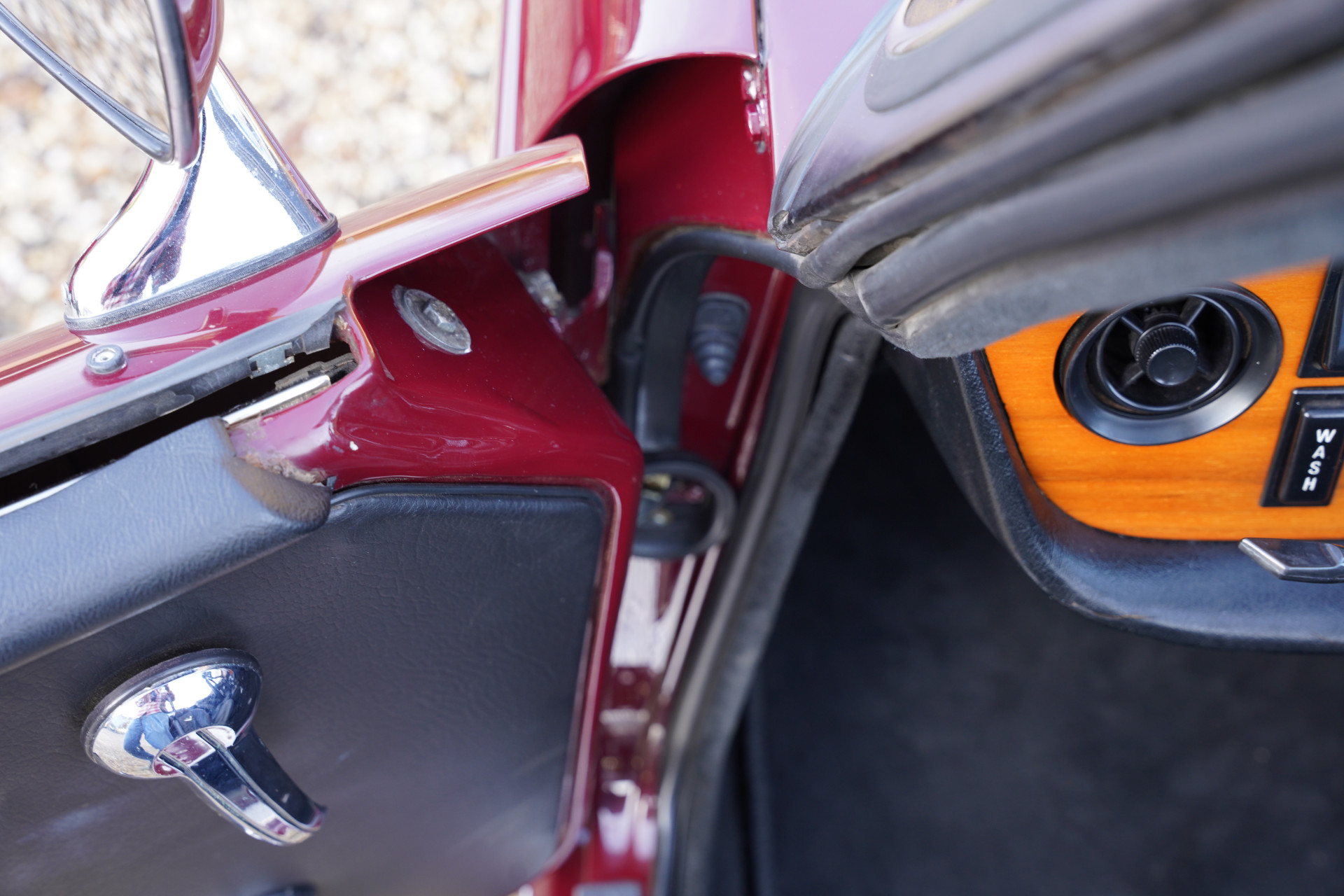 The bodywork is in good condition, with straight panels that are mostly original and have excellent alignment. The Damson Red paint is very attractive, and the wheels look excellent. The interior is gorgeous and in very good condition. The seats are comfortable and of high quality, and the dashboard is beautifully crafted. In short, the restoration work is clearly visible.