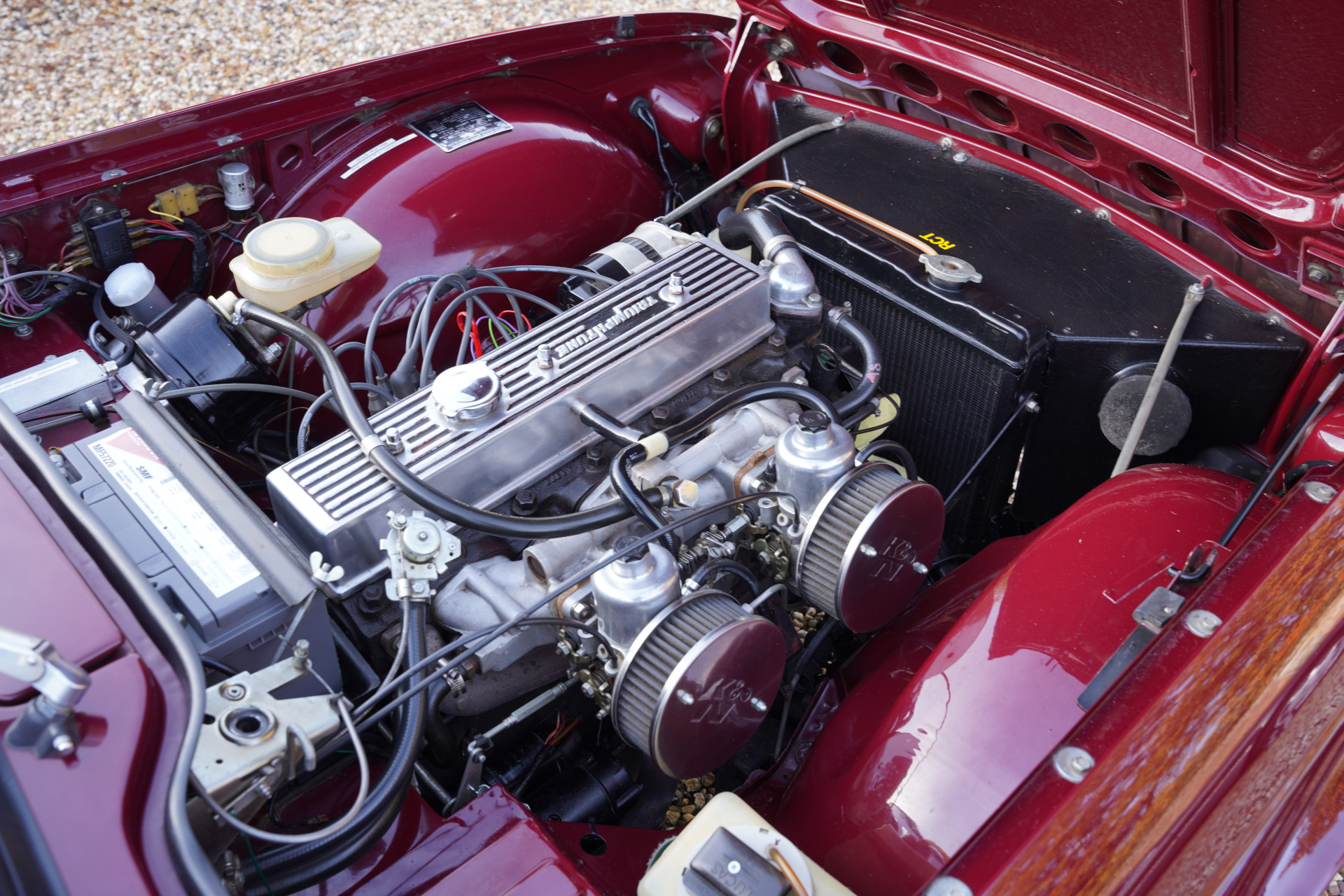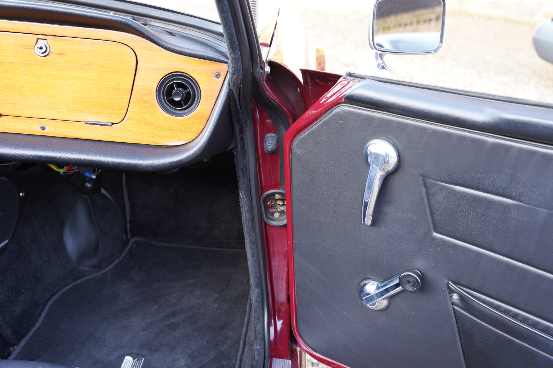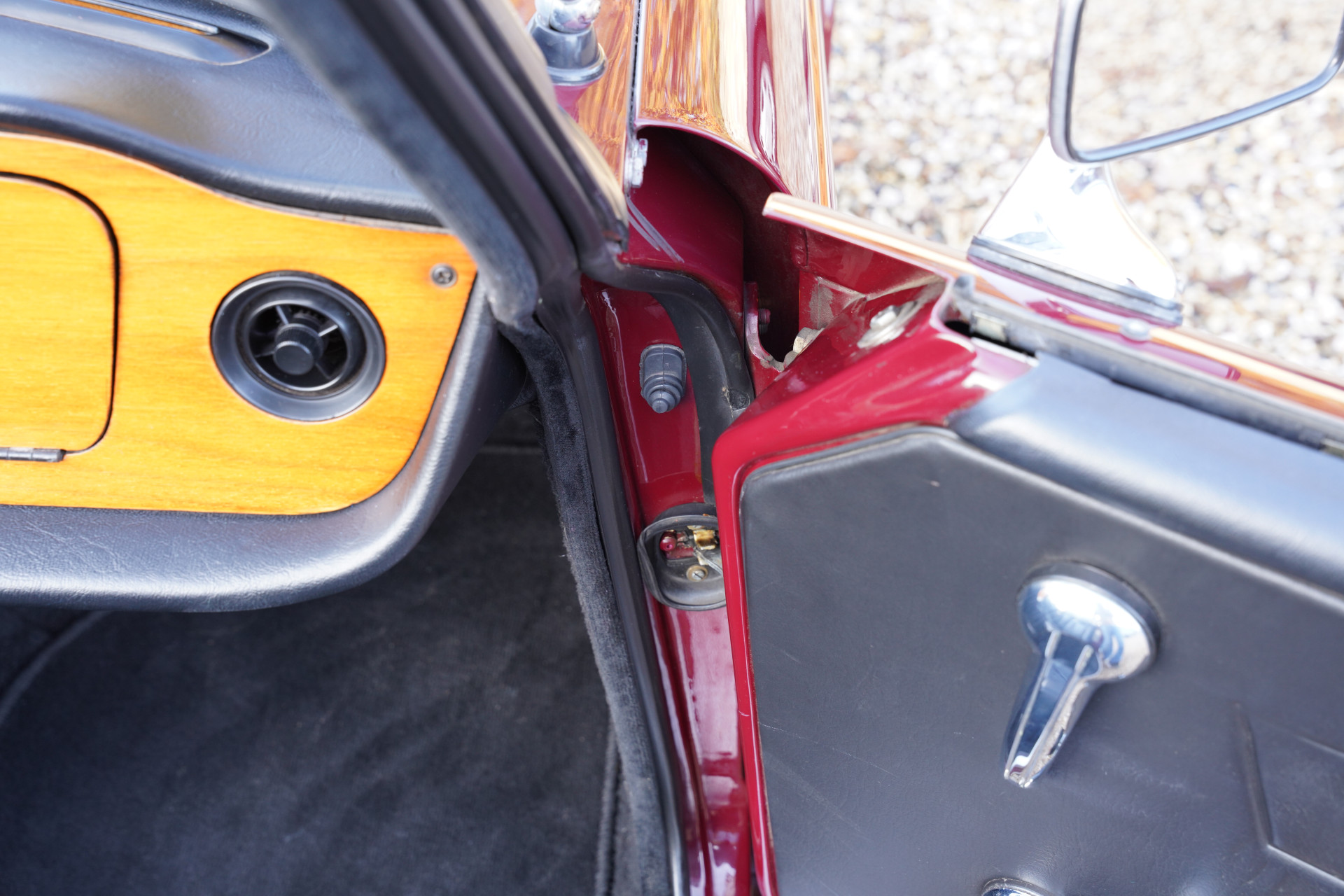 The bodywork is in good condition, with straight panels that are mostly original and have excellent alignment. The Damson Red paint is very attractive, and the wheels look excellent. The interior is gorgeous and in very good condition. The seats are comfortable and of high quality, and the dashboard is beautifully crafted. In short, the restoration work is clearly visible.