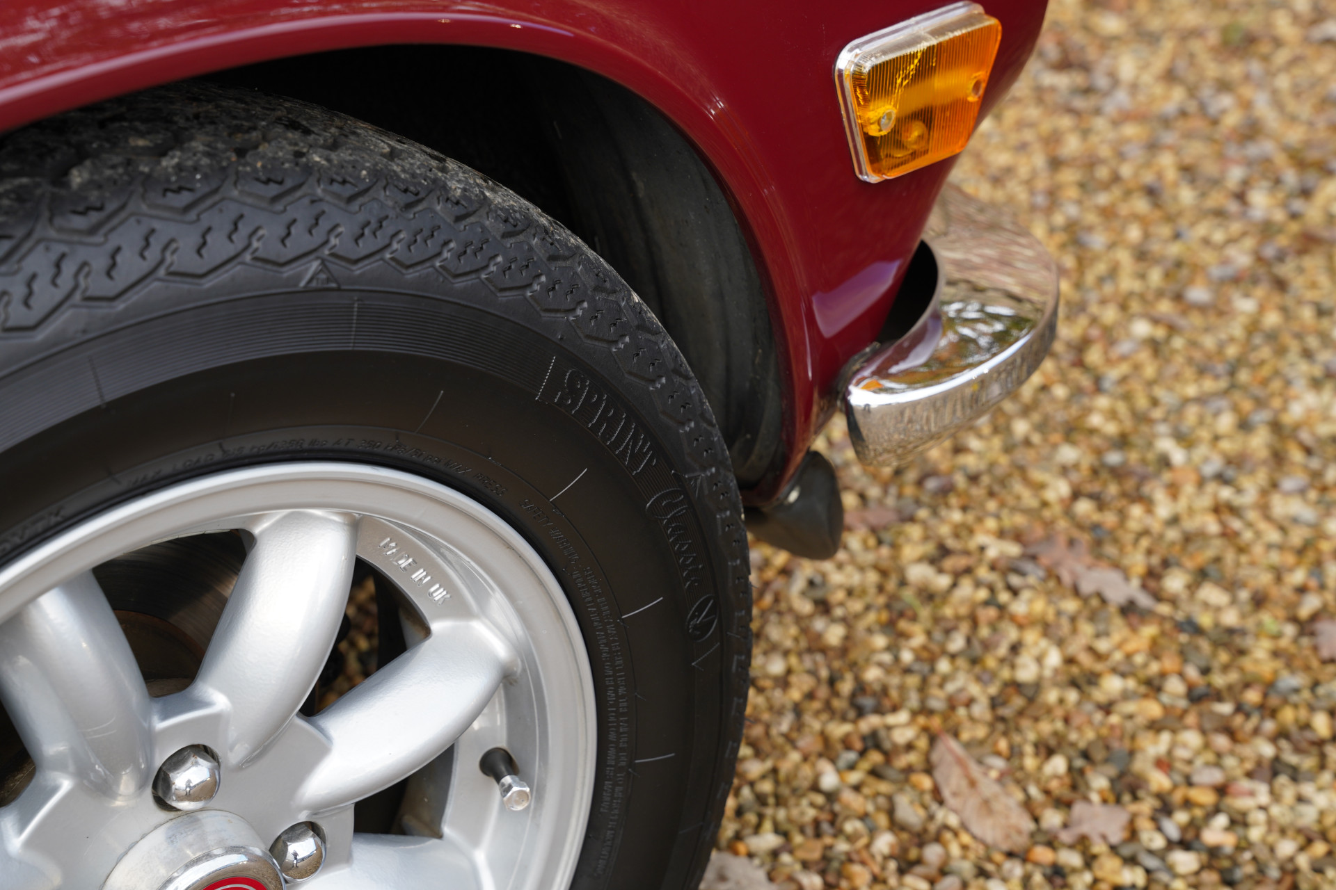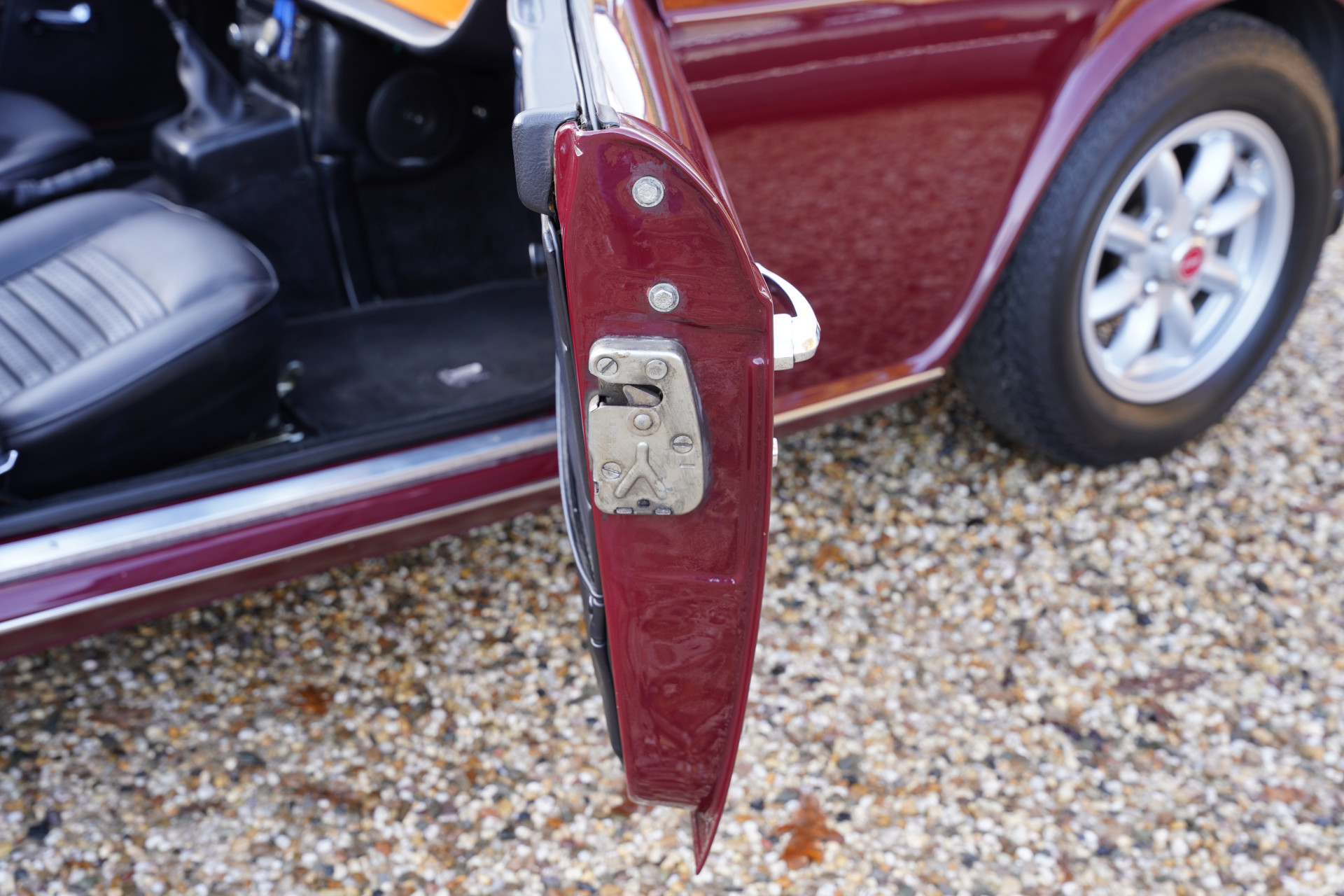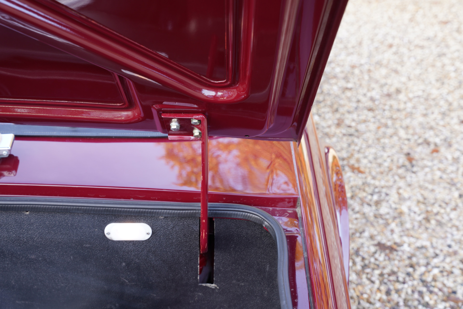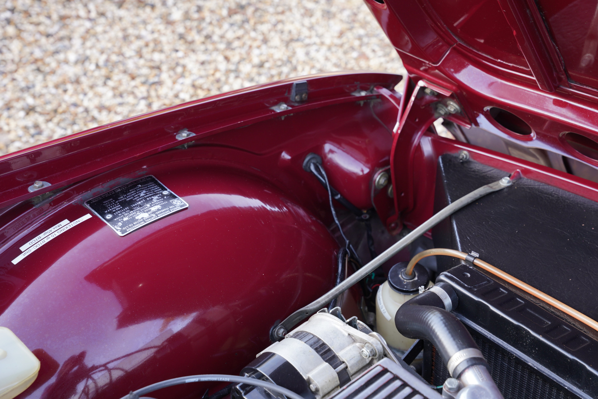 De carrosserie is in goede staat verkerend met strak plaatwerk dat nog grotendeels origineel plaatwerk is en fraaie passingen heeft. De Damson Red lak is zeer fraai en de wielen zien er uitstekend uit. Het interieur is prachtig en in zeer goede staat. De stoelen zitten heerlijk, zijn van goede kwaliteit, en het dashboard is zeer fraai. Kortom, de restauratiewerkzaamheden zijn goed zichtbaar.