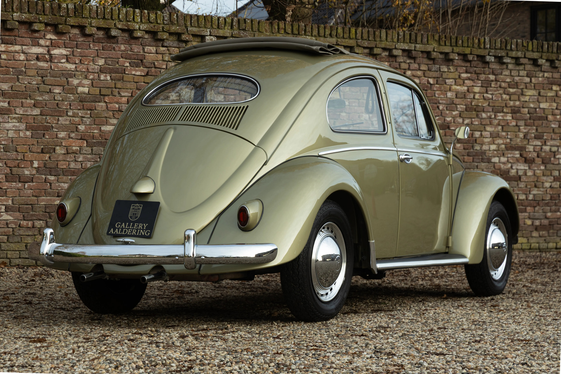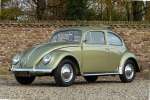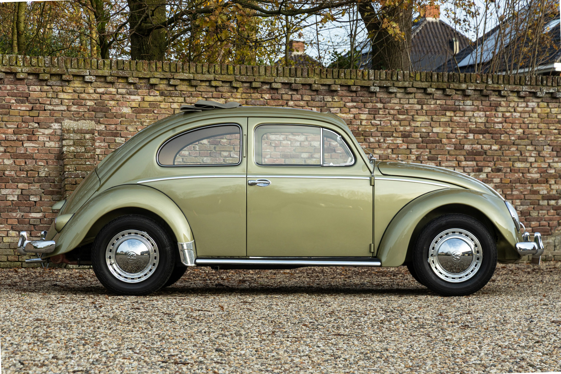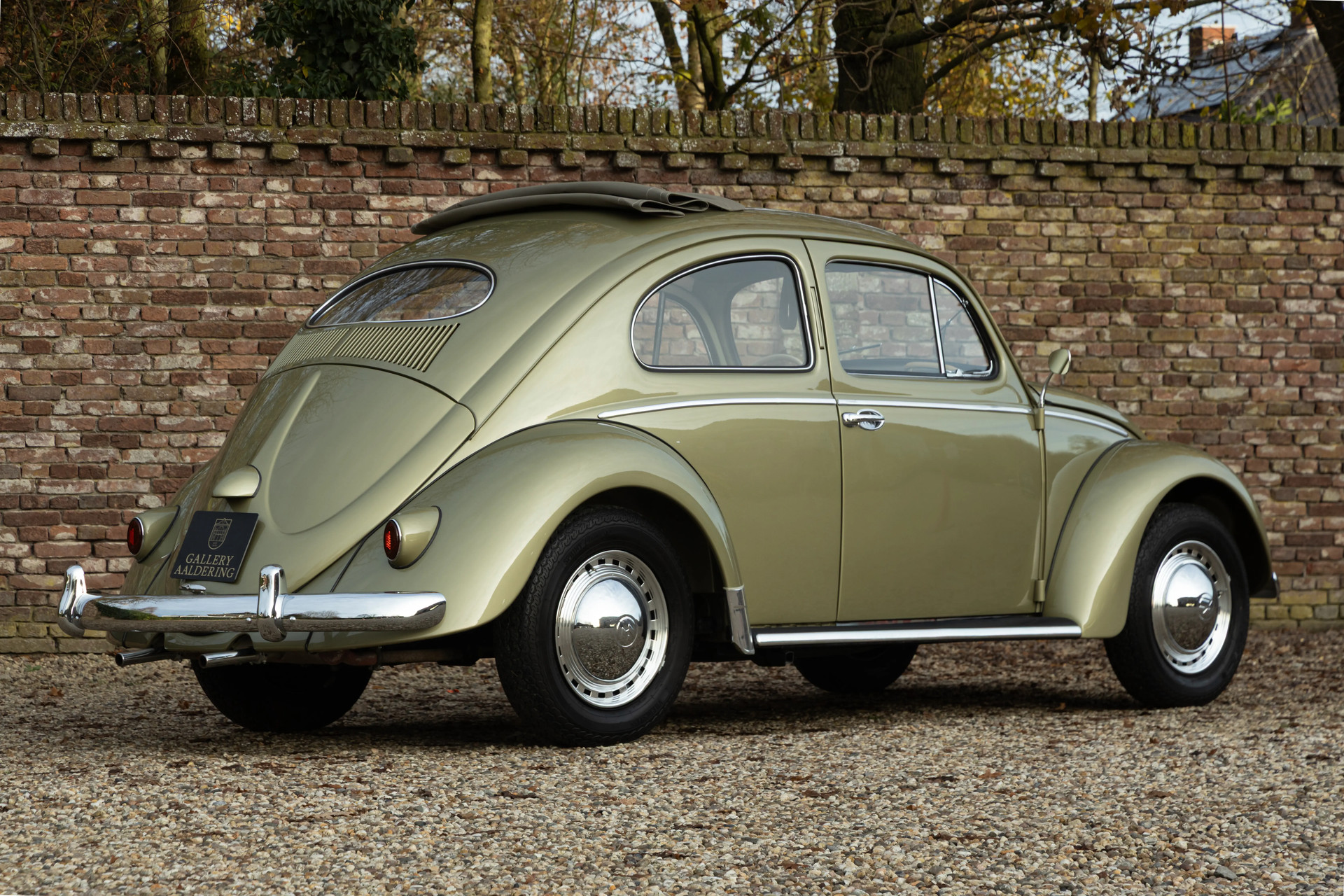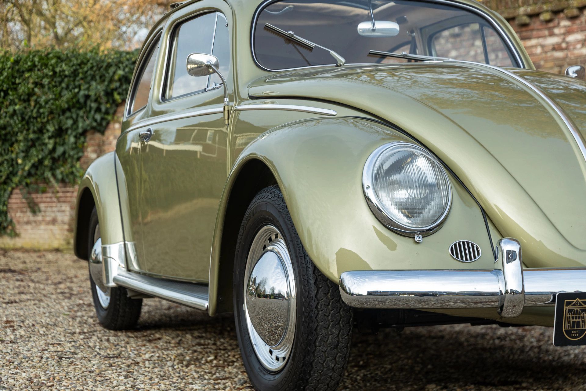 Some classic cars make you smile the moment you see them. This 1956 Beetle belongs unmistakably to that category. The elegant Oval Ragtop, finished in the timeless shade of Diamant Grün with a warm beige-brown cloth interior, has that irresistible presence that sets the finest classics apart. It doesn’t try to impress; it simply does.
