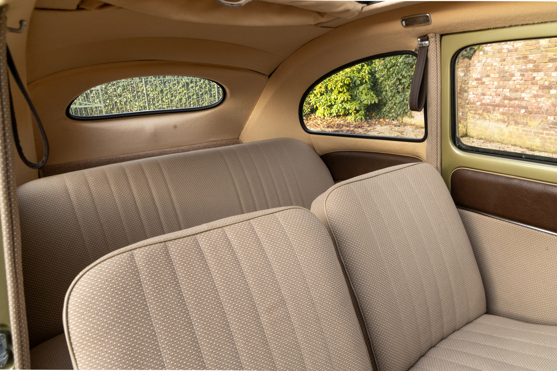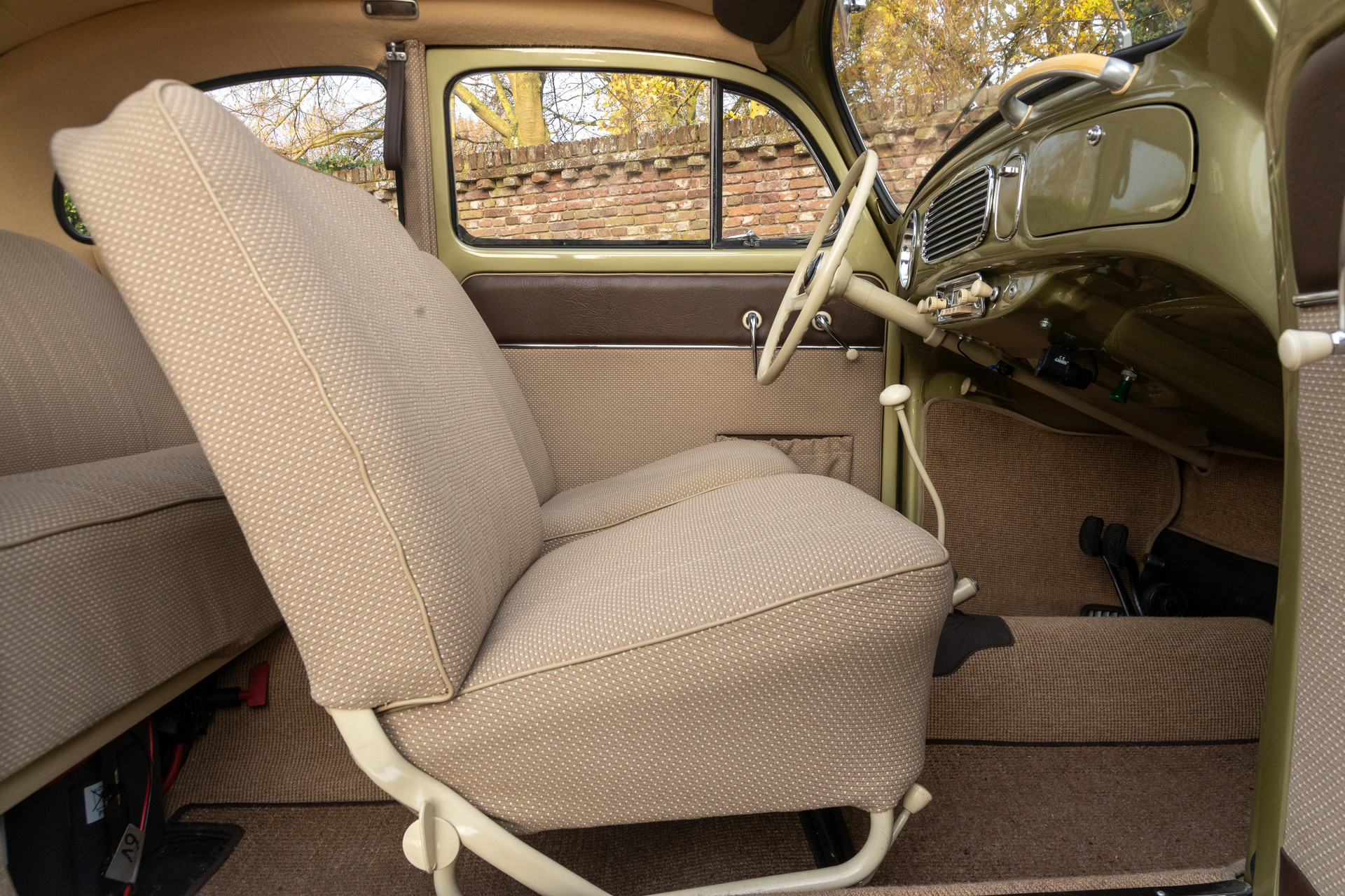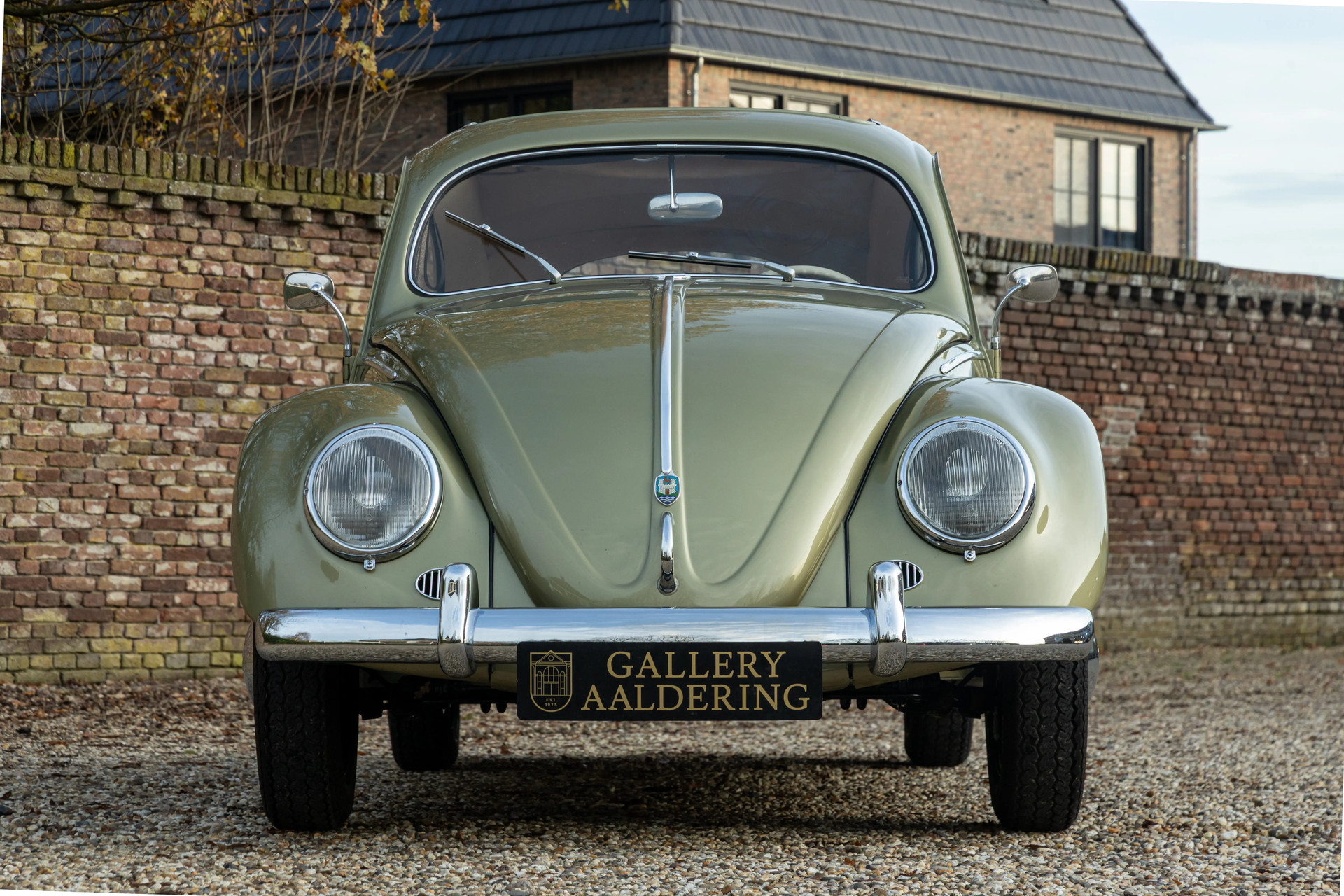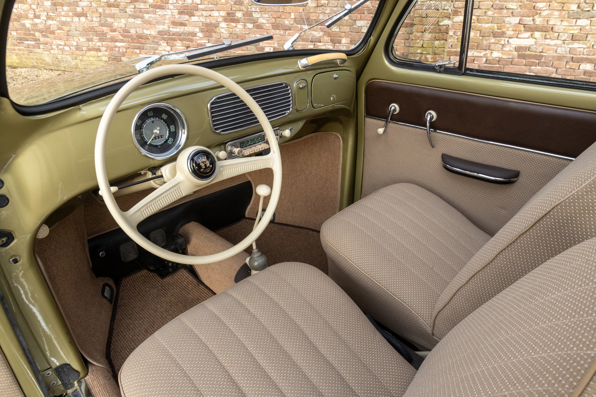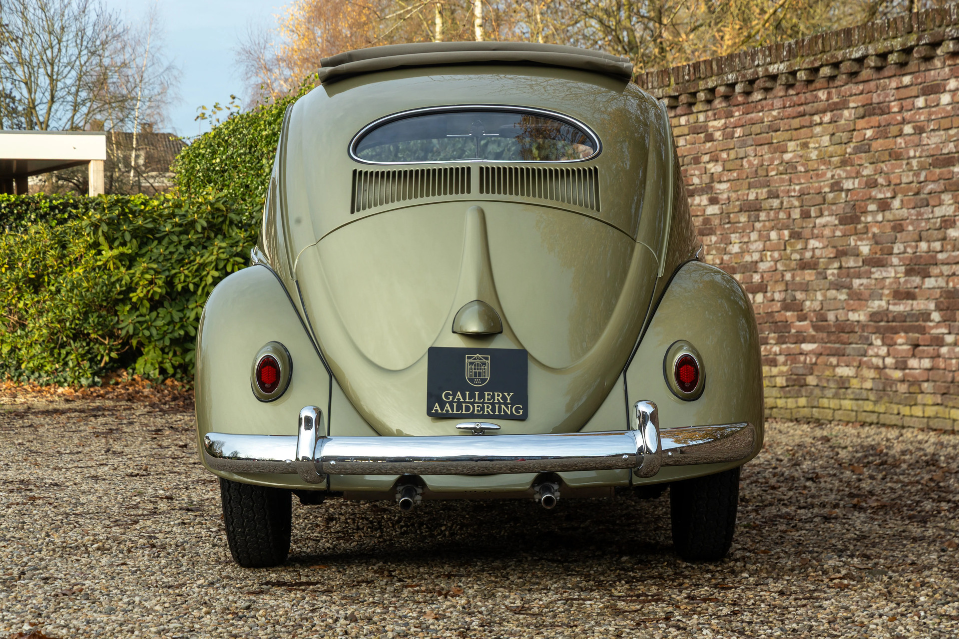 Some classic cars make you smile the moment you see them. This 1956 Beetle belongs unmistakably to that category. The elegant Oval Ragtop, finished in the timeless shade of Diamant Grün with a warm beige-brown cloth interior, has that irresistible presence that sets the finest classics apart. It doesn’t try to impress; it simply does.