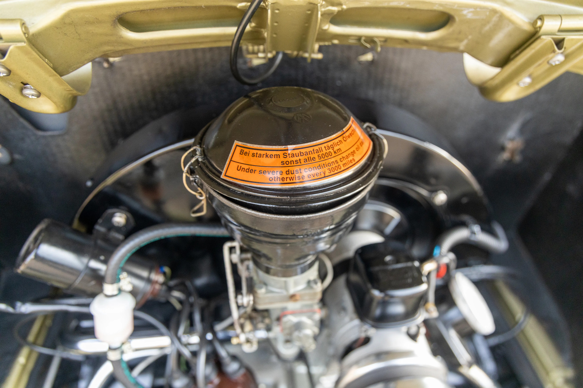 This beautiful Beetle underwent a complete, lovingly executed restoration in Germany in the early 2000s—thoroughly documented with a detailed photo series capturing the depth and dedication of the work. Every component was handled with care; even the seat springs were sandblasted. It’s the kind of meticulous approach you only see when someone works from pure passion and perfectionism.