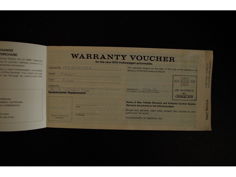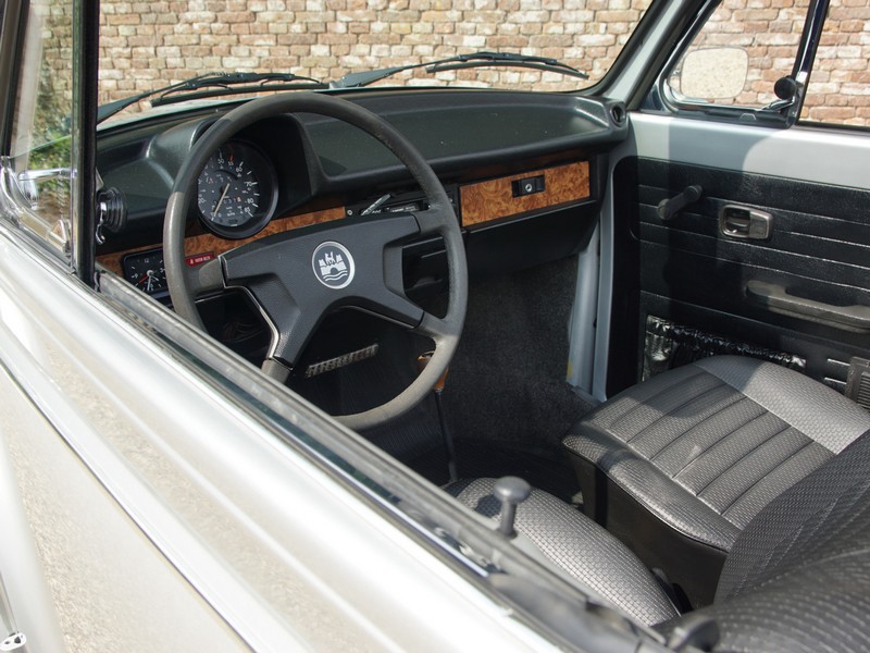 This superbly original 1979 built Volkswagen Beetle convertible was supplied from new by VW dealer Jim McDonald of Lincoln, Nebraska, the USA on the 25th January 1980. What is remarkable is that this authentic, unrestored car has only travelled 19,037 miles in all those years. The wonderful bodywork has well fitting body panels and really good paintwork. The underbody is as good as new; it has never required any welding and is fully rust-free. Mechanically the car is in excellent working order and drives perfectly. It has the original ‘Silver’ finish in combination with a black vinyl interior trim and matching hood. It has the correct injection engine. This Beetle comes with its original service book and owner’s manual.