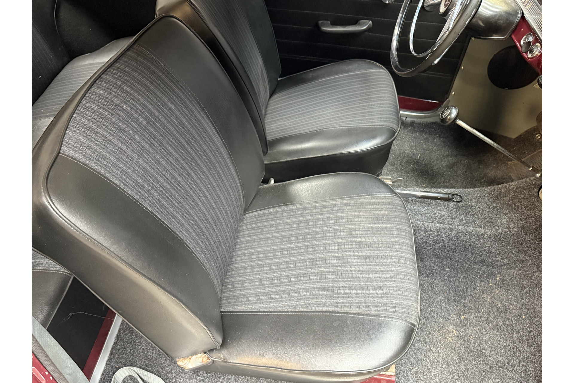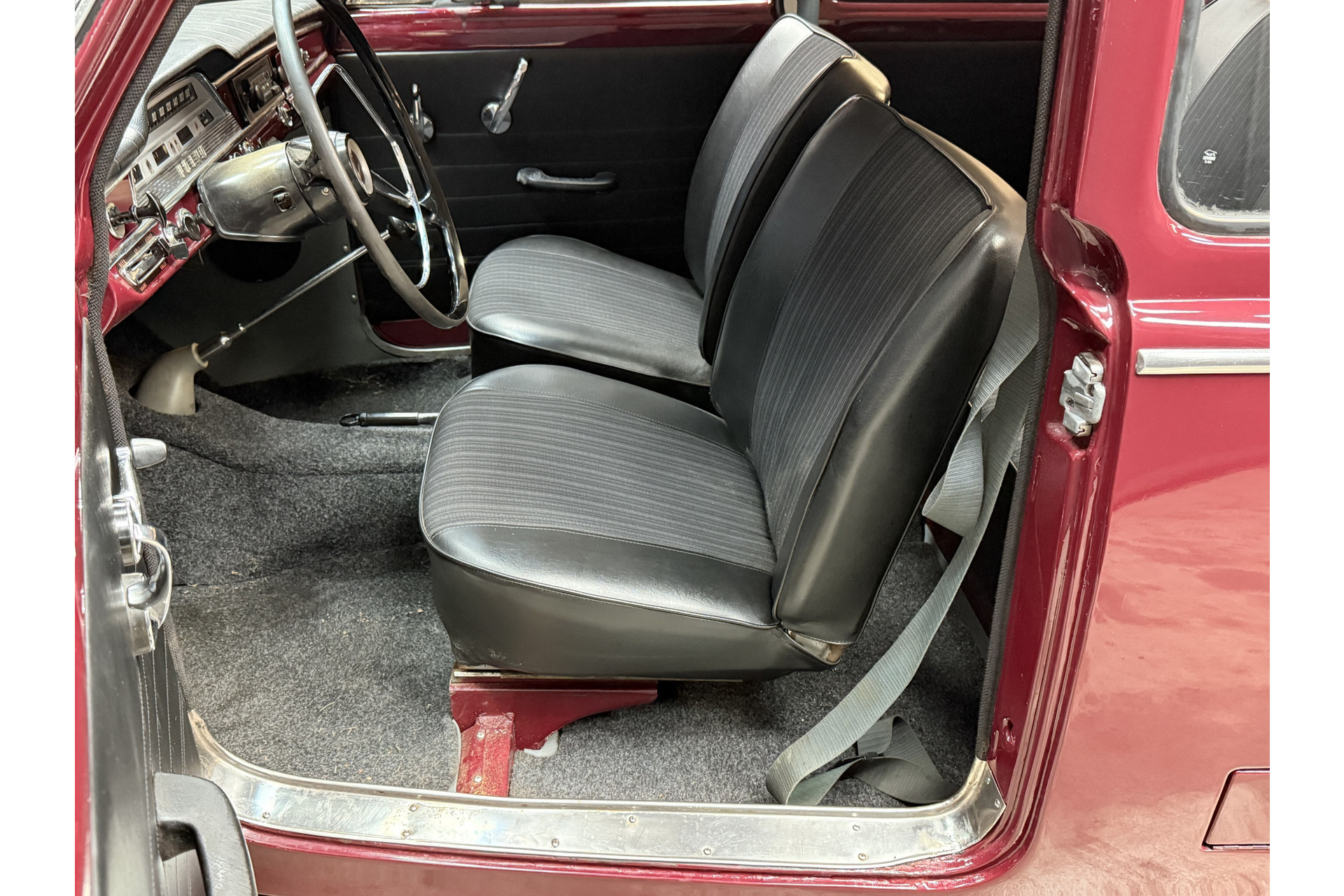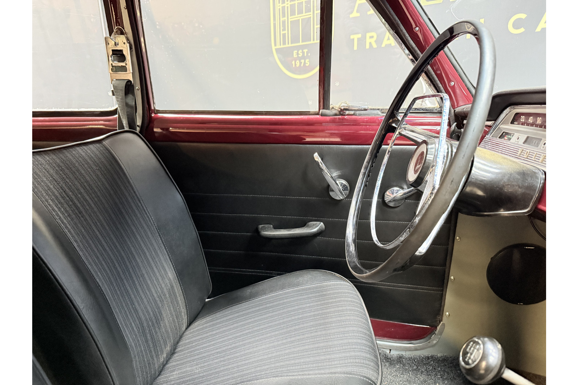 In 2004, this Duett was carefully restored and mechanically overhauled, and today it presents in beautiful condition. The exterior has been refinished in a deep, warm Wine Red, a perfect match for its black vinyl interior. It’s one of those cars that just feels right the moment you see it — honest, well-proportioned, and lovingly maintained. The overall impression is clean, correct, and remarkably well preserved.