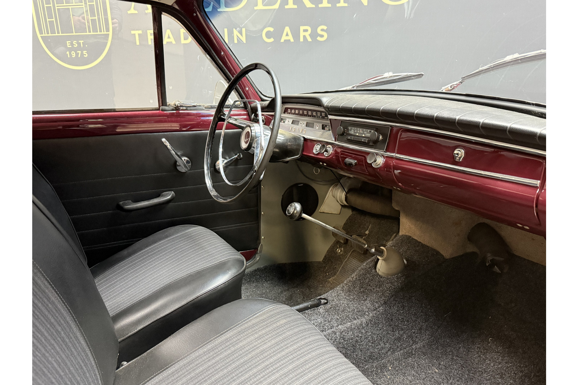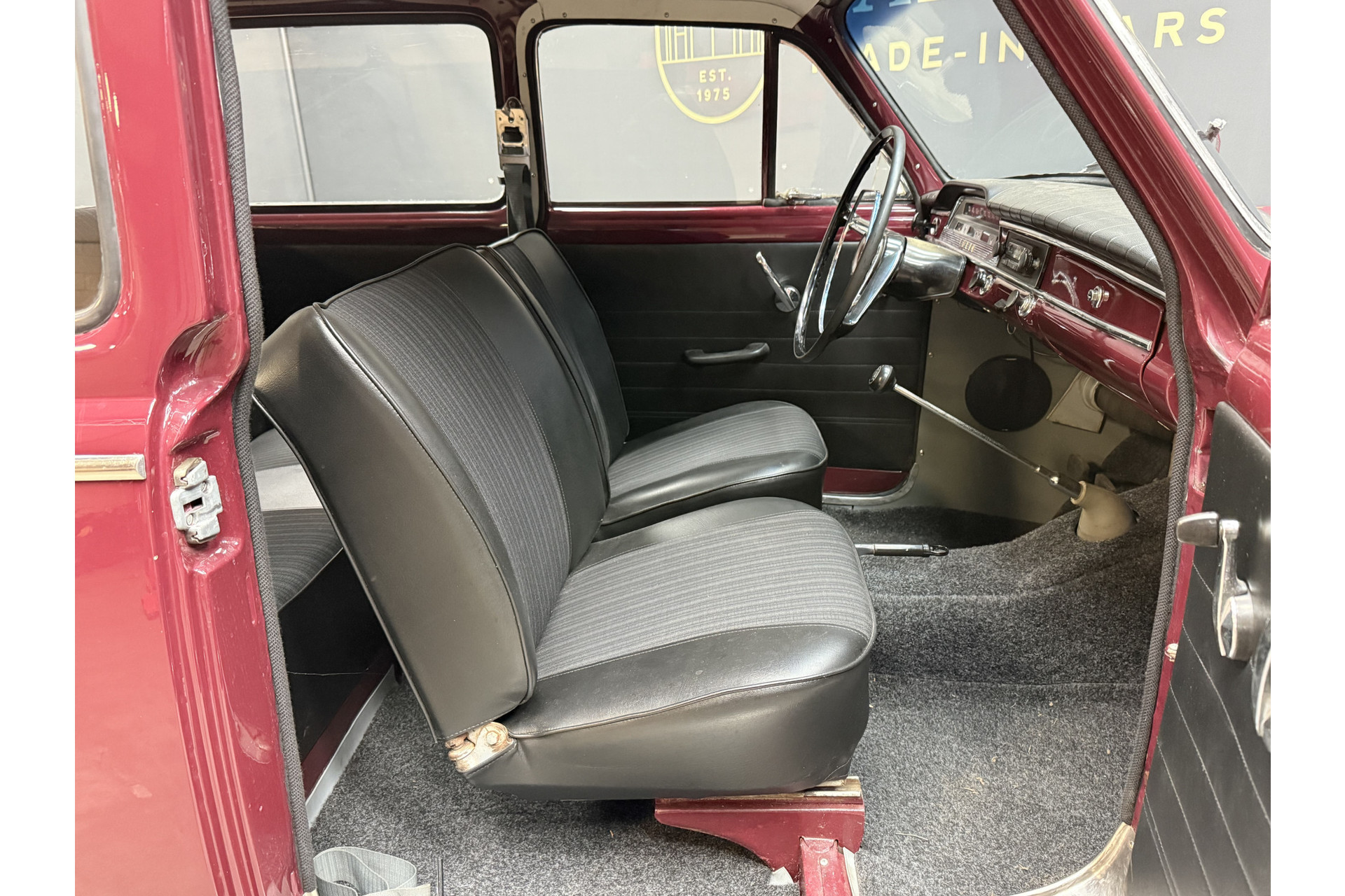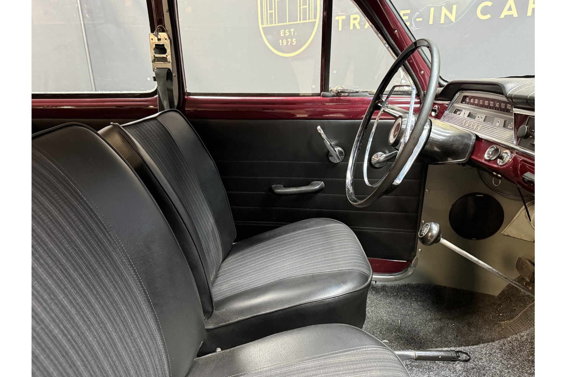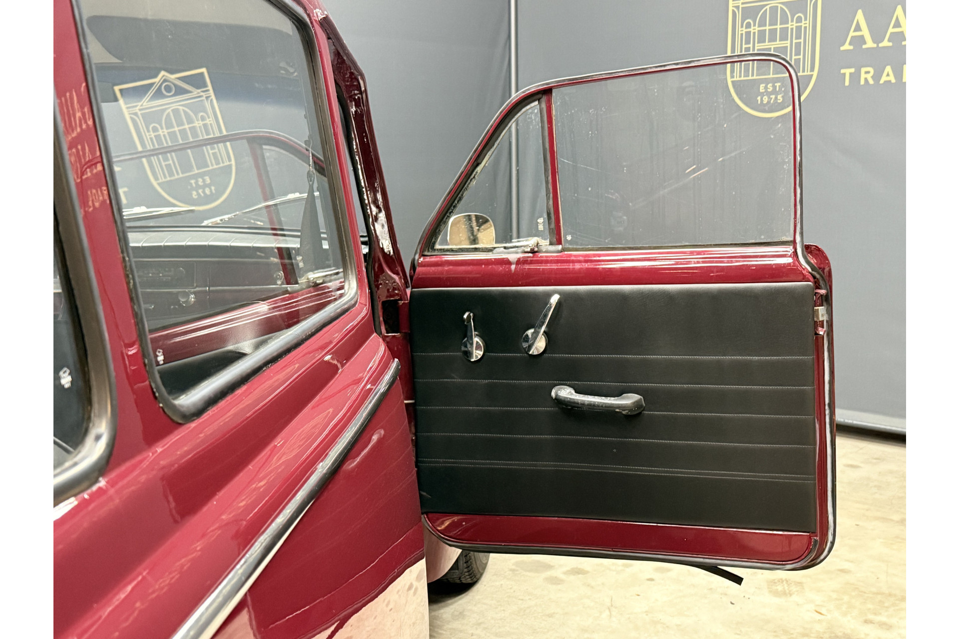 In 2004, this Duett was carefully restored and mechanically overhauled, and today it presents in beautiful condition. The exterior has been refinished in a deep, warm Wine Red, a perfect match for its black vinyl interior. It’s one of those cars that just feels right the moment you see it — honest, well-proportioned, and lovingly maintained. The overall impression is clean, correct, and remarkably well preserved.
