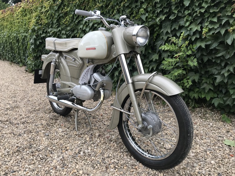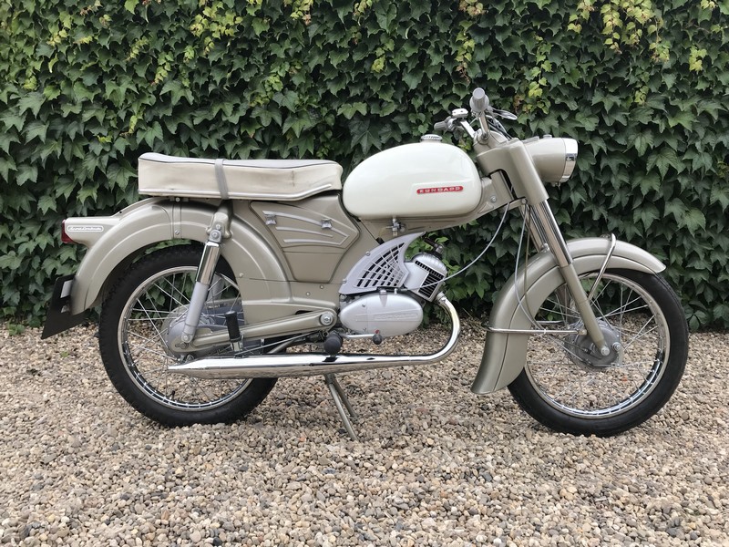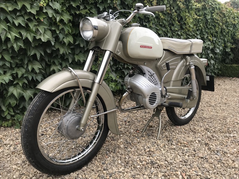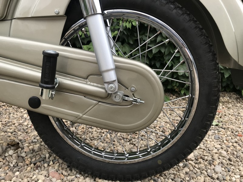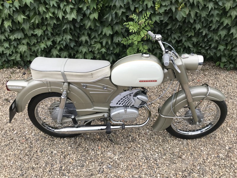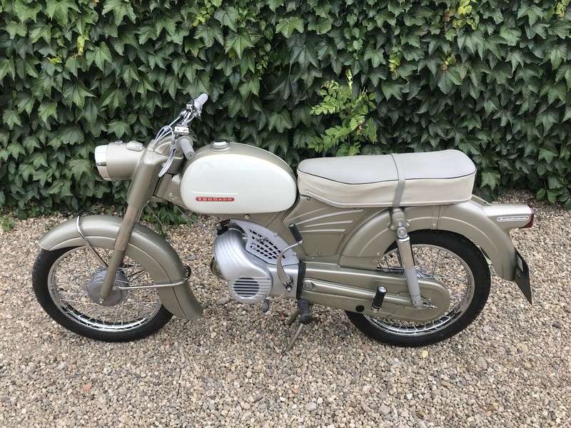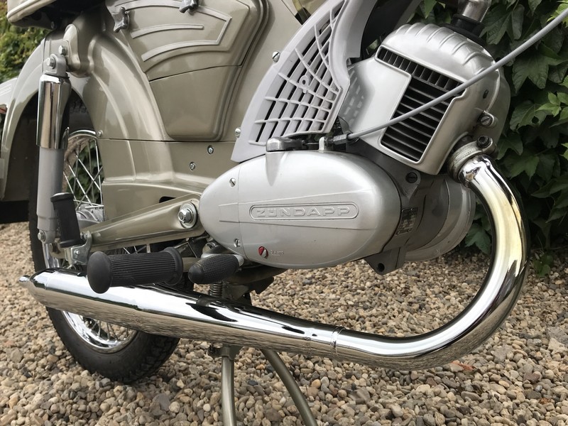 A very special 1965 Zündapp Super Combinette Type 515-041. This example has benefitted from a total recent restoration in Germany that has been recorded from A to Z. No imitation or reproduction materials were used during the process at all! The chrome detailing is also completely original and brought back to new! Their amazing attention to detail even went as far as showing the spot welding on for instance the front mudguard, just like they were in 1965! Everything is so new that the engine still needs to be run in. This bike delivers a wonderful drive and the 3-speed foot transmission is easy to use. All in all a rather unique Zündapp that has been brought back to new with a correctly recorded history!