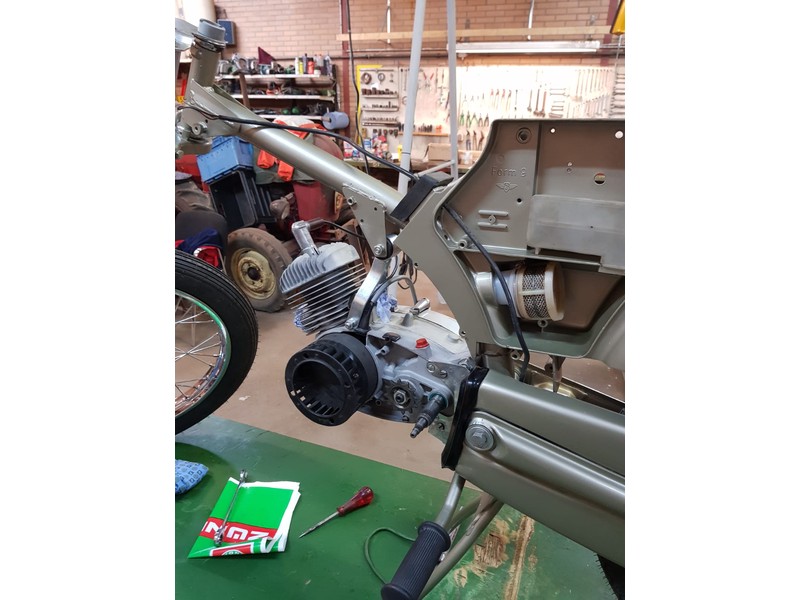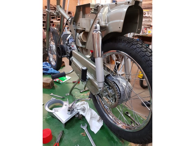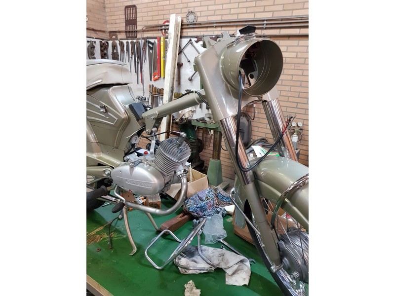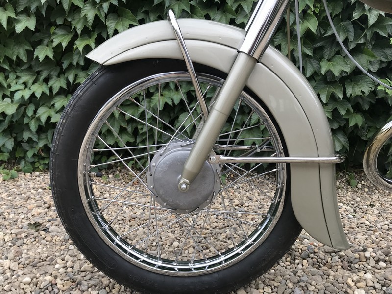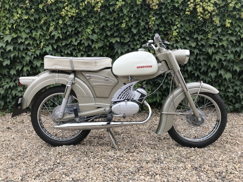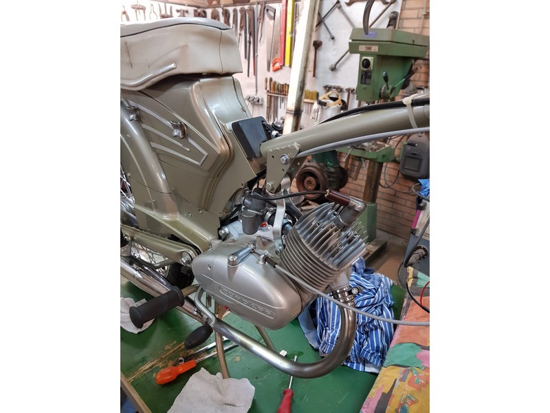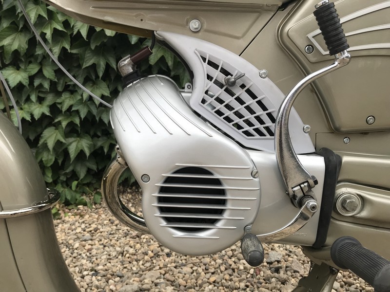 A very special 1965 Zündapp Super Combinette Type 515-041. This example has benefitted from a total recent restoration in Germany that has been recorded from A to Z. No imitation or reproduction materials were used during the process at all! The chrome detailing is also completely original and brought back to new! Their amazing attention to detail even went as far as showing the spot welding on for instance the front mudguard, just like they were in 1965! Everything is so new that the engine still needs to be run in. This bike delivers a wonderful drive and the 3-speed foot transmission is easy to use. All in all a rather unique Zündapp that has been brought back to new with a correctly recorded history!